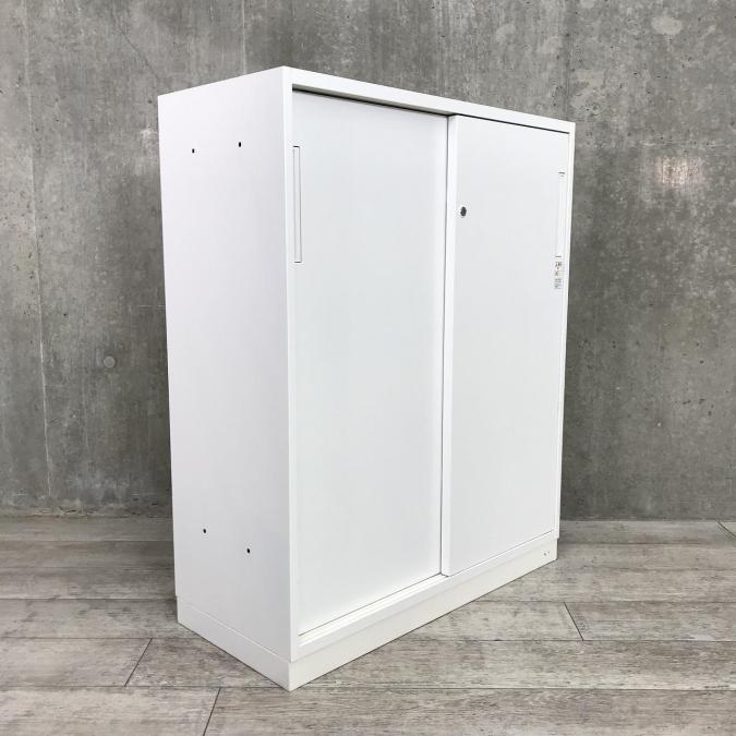 【スライド引き戸だから開閉スペースに困らない!】■コクヨ(KOKUYO)製 エディア(EDIA)シリーズ 2枚引き違い書庫 ローキャビネット シリンダー錠 天板付き ベース付き ホワイト シリンダー錠 収納 中古家具 格安 福岡 オフィス家具 九州最大級《オフィスバスターズ福岡博多店は、福岡を拠点として、日本全国へ中古オフィス用品・オフィス家具を提供しております》