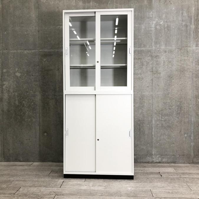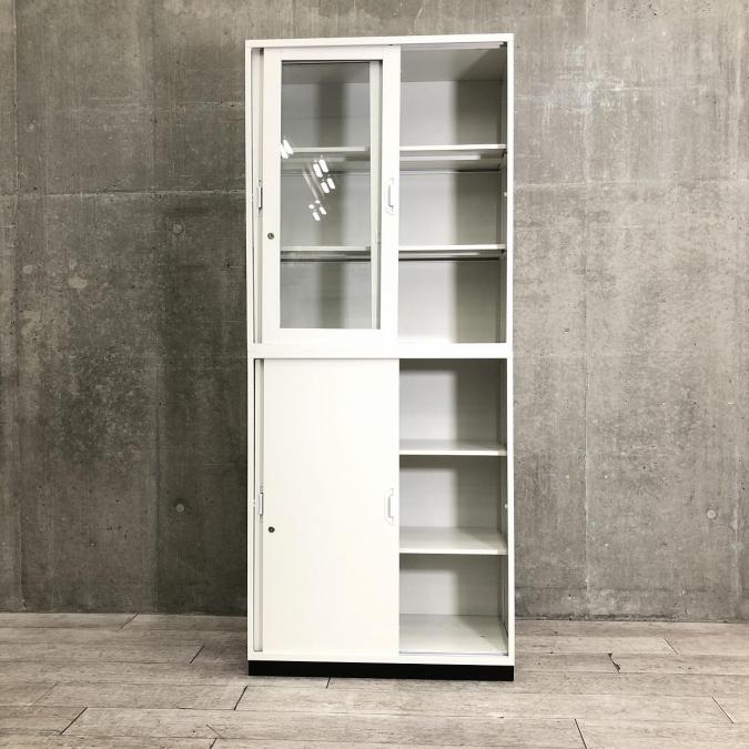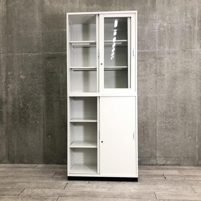 【珍しいガラス引き戸の上下セットが入荷しました!】スチール製引違書庫セット 豊国製- 千葉店