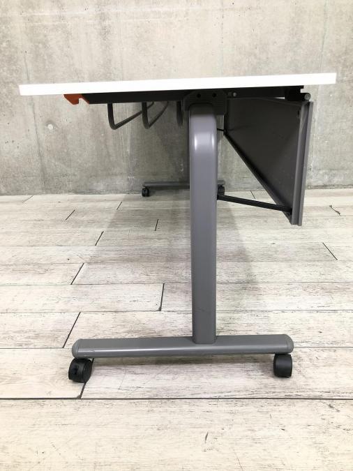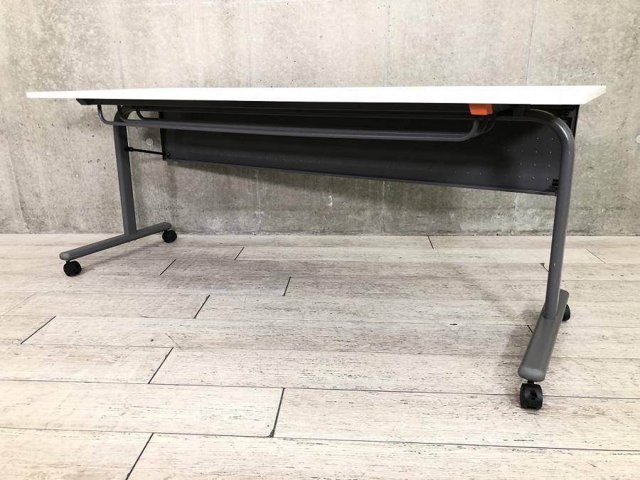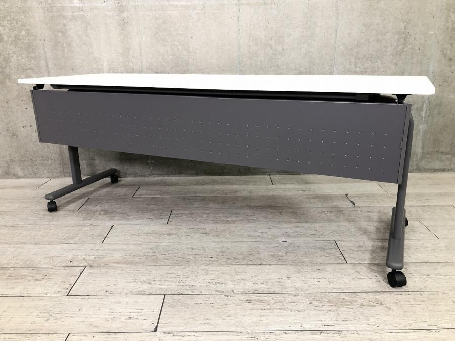 【2~3名様で使えるスタックテーブル入荷!キャスター付きで移動も楽々!】■UCHIDA(内田洋行)製 A-stack サイドスタックテーブル ■幅1800×奥行600 ■幕板付き ■ホワイト×グレー【天板跳ね上げ式でコンパクトに収納】- 在庫数