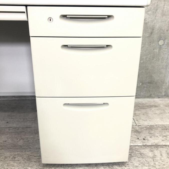 【オカムラの超定番シリーズ!袖一体型で書類をたっぷり収納可能!】■オカムラ (okamura)製 SD-Vシリーズ 片袖机 W1200mm×D700mm ■シリンダー錠 ■ライトグレー 【弊社使用欄:A01034077】