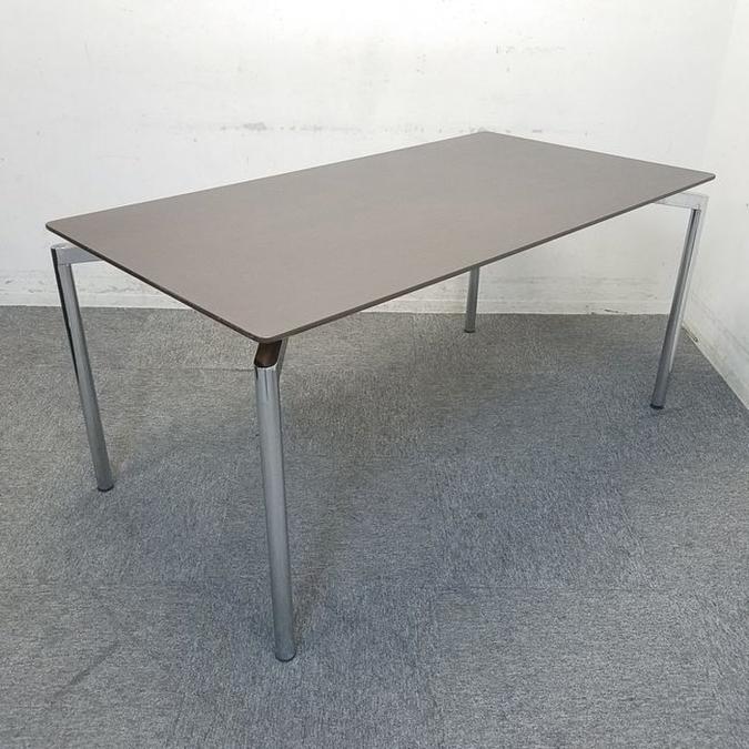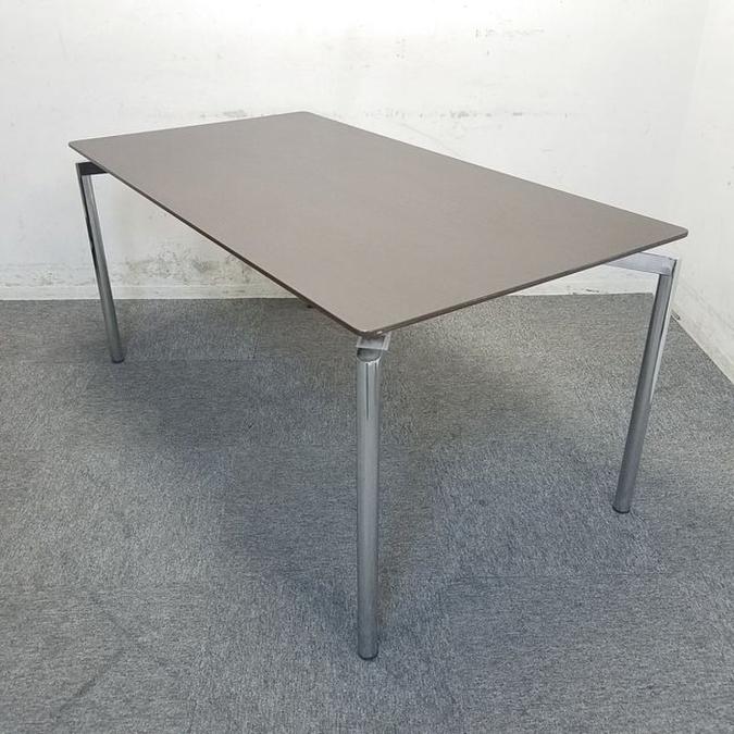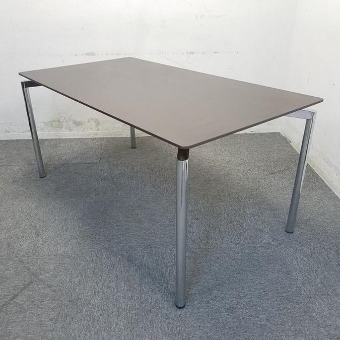 【2台限定】ウチダ MRシリーズ W1500/D800 ブラウン天板 会議用テーブル ミーティングテーブル 4名様推奨サイズ ※天板側面削れあり- 名古屋千種店