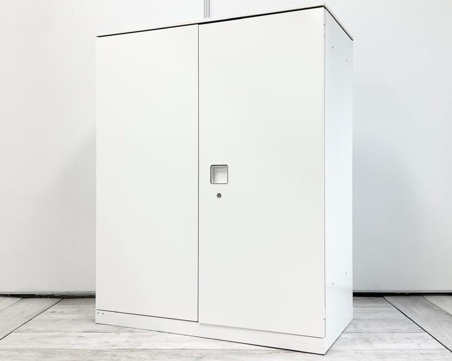 【オフィスの書類をスッキリ整理!取っ手がどの方向からでも開くマルチハンドルが人気!】■オカムラ(okamura)製 レクトラインシリーズ ローキャビネット 両開き書庫 H1250㎜ ■ホワイト ■シリンダー錠