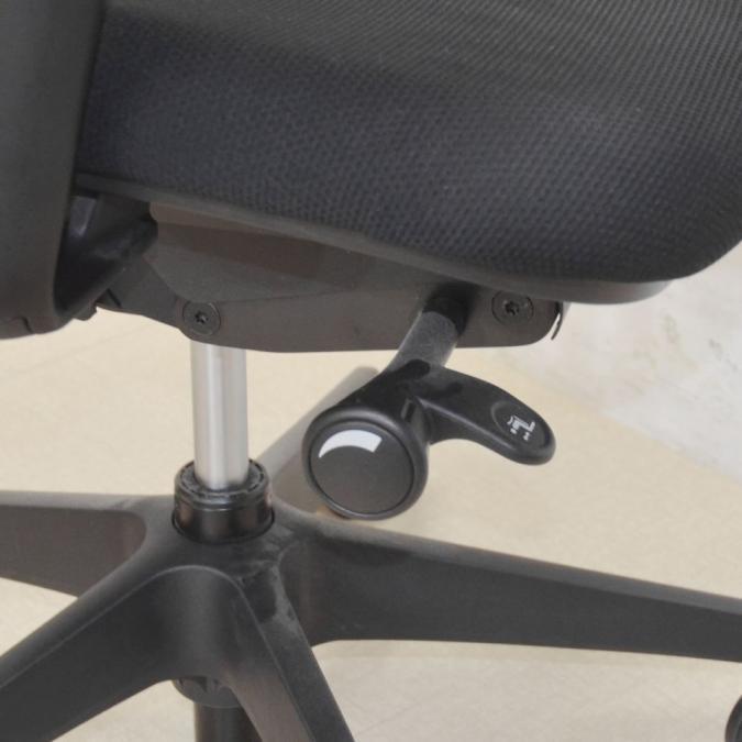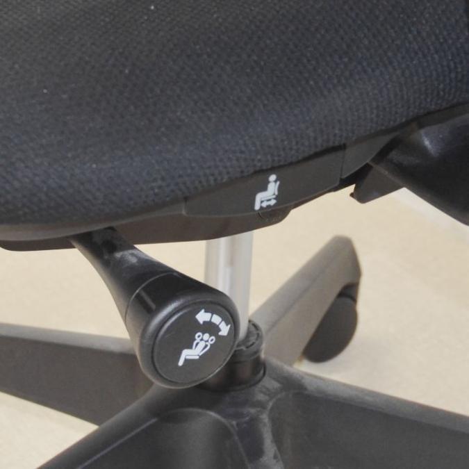- 座面右下のダイヤル操作で、リクライニングの強弱調整が行えます。これまでのダイヤル式よりも、少ない回転数で、最弱?最強の調整が可能です。