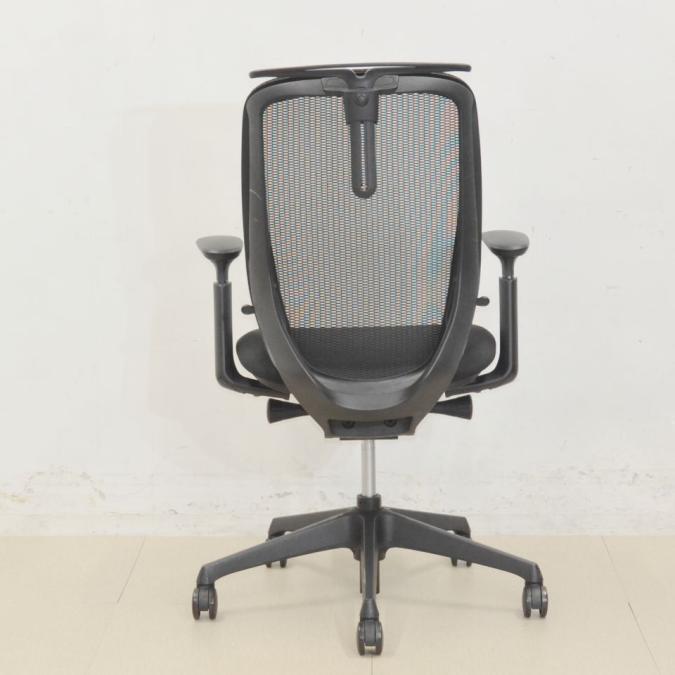 【限定1脚】【三次元曲面が身体にフィット!前傾チルト機能付き大人気メッシュチェア!】■オカムラ(okamura)製 シルフィーチェア(Sylphy) 肘付きハイバック ■背面メッシュ ■可動肘 ■ブラック×ブラックシェル ■ランバーサポート付き