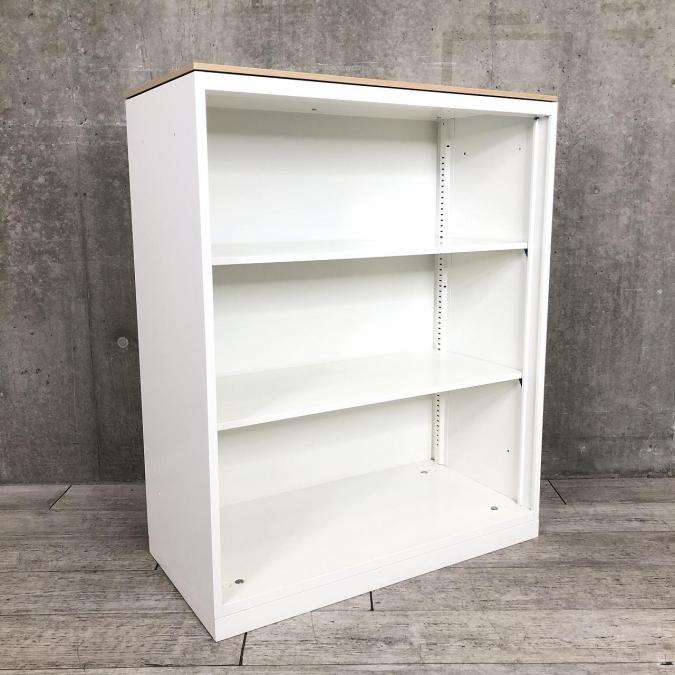 オカムラ製 レクトラインシリーズ オープンキャビネット ホワイト天板付き A4×3段収納可能な書庫