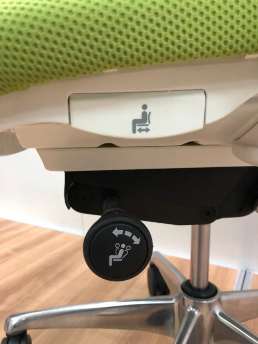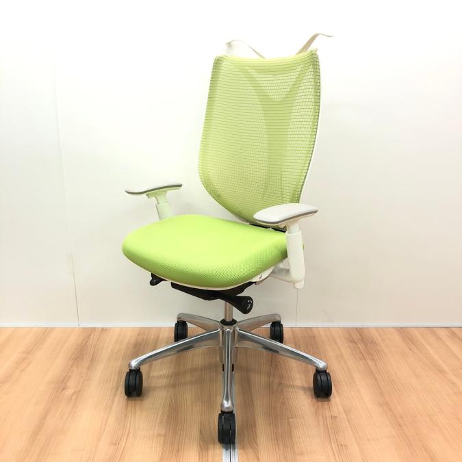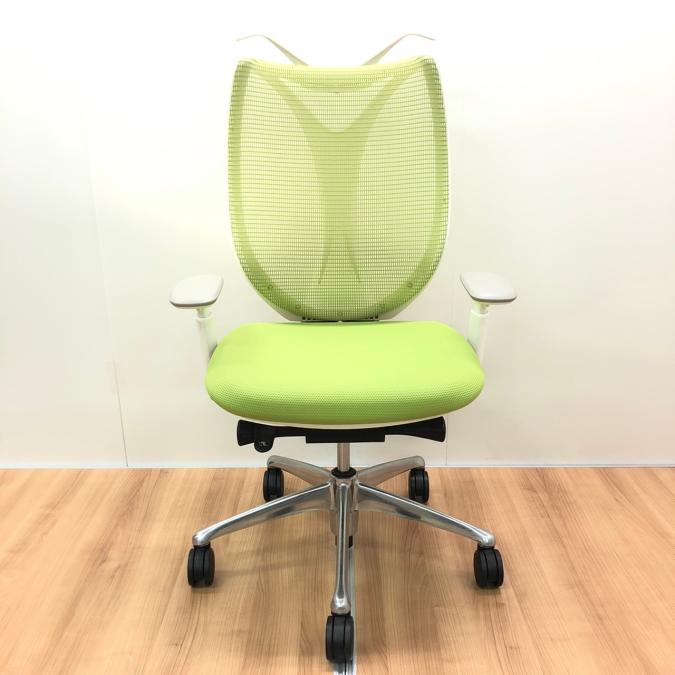2021年製/使用3年以内【限定4脚】【腰痛の方必見!前傾姿勢で腰痛対策!!】オカムラ サブリナ ライトグリーン 可動肘 メッシュ 前傾姿勢- 福岡西店