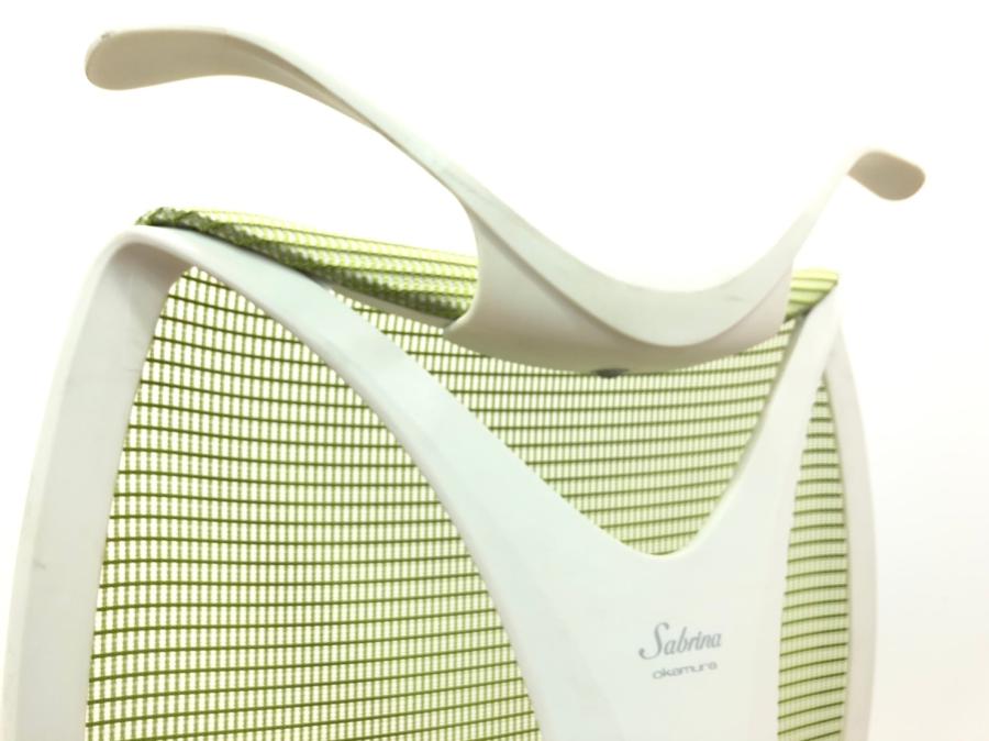【美しい曲線&透明感のあるメッシュ】■オカムラ製 サブリナチェア ダークグリーン アジャストアーム付 ホワイトボディ ハンガー付【※外部倉庫在庫品(店頭在庫無)】【BR】