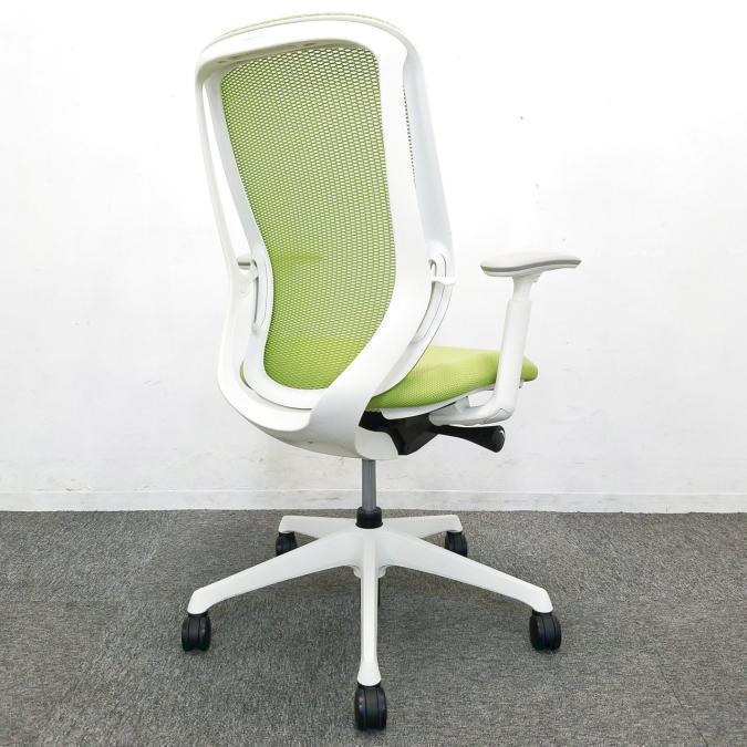 【前傾チルト機能付き!オカムラ製品で最も人気を集める高機能メッシュチェア!】■オカムラ(okamura)製 シルフィ(Sylphy)チェア ハイバック 肘付き ■可動肘 ■ライムグリーン × ホワイトシェル【状態良好品!】