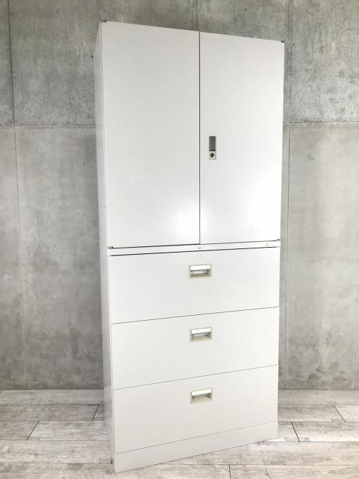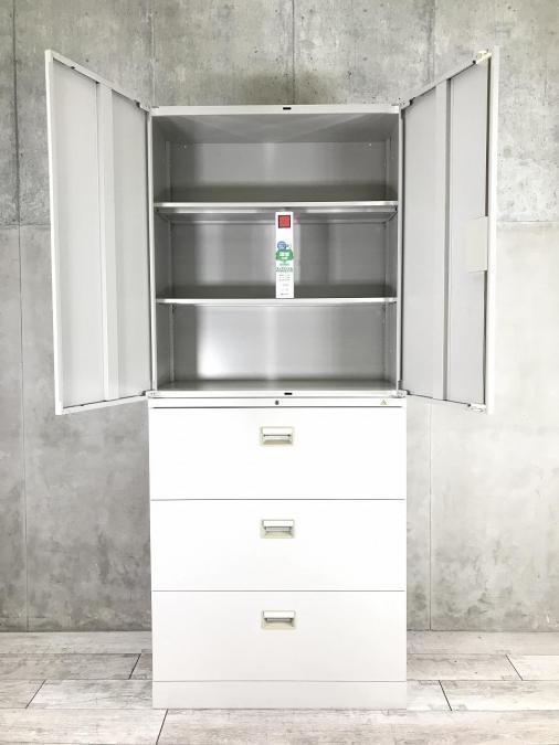 【両開き+3段引き出し】落ち着いたニューグレー色!オフィスにオススメ!- 神戸・三宮店