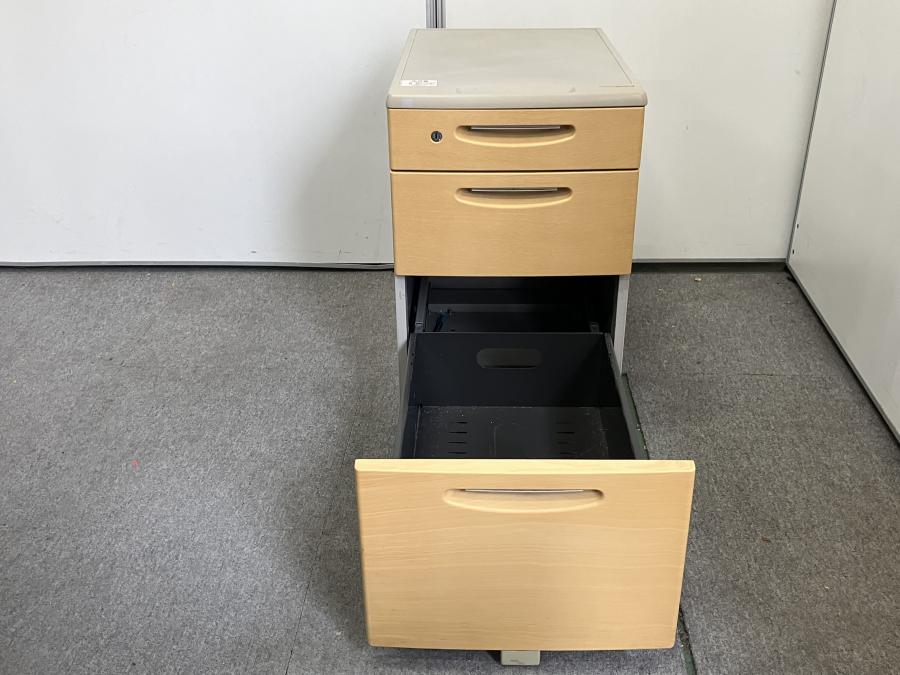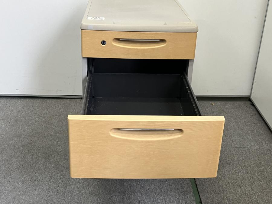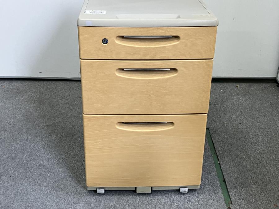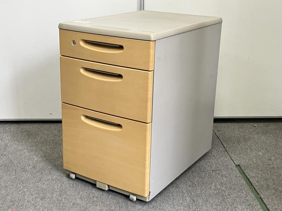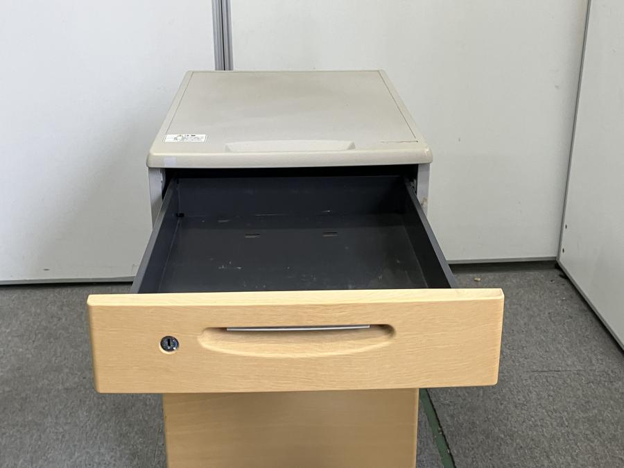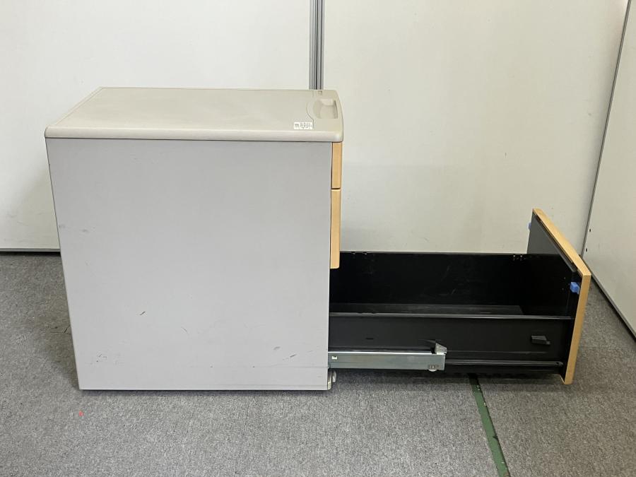 在庫入れ替えセール!【珍しい表面が木目調のタイプです!】■オカムラ/SD/ニューグレー/3段ワゴン 表面ライトスモーク×ナチュラル! ※キャスター付き 台数揃います!- 池袋店