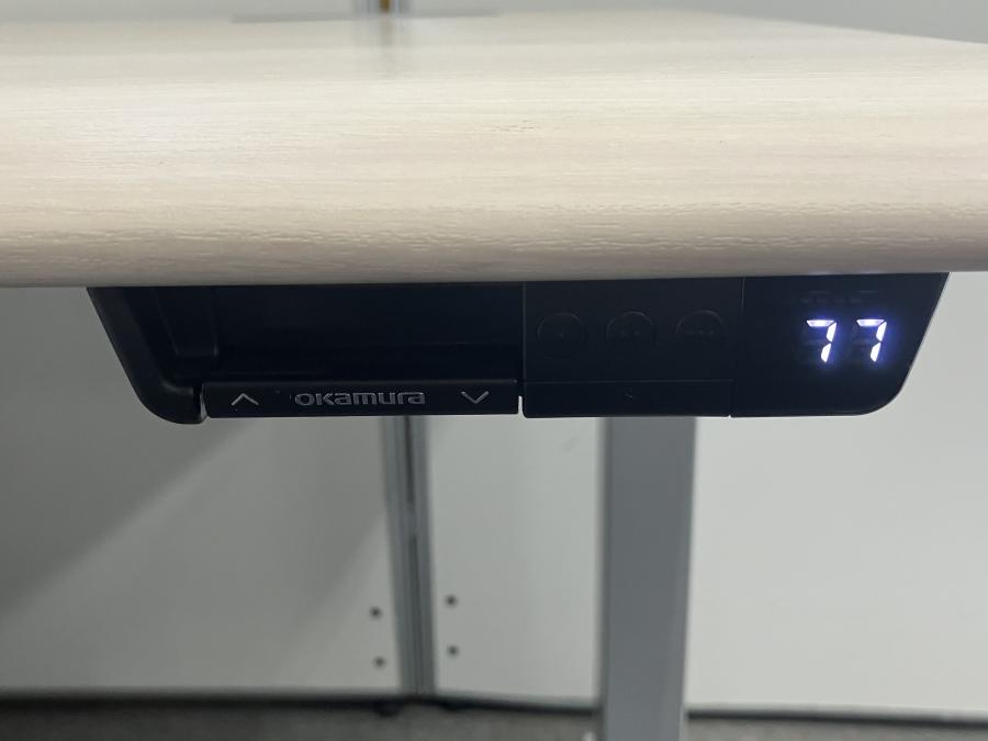 【ABW】【電動昇降デスク!】■オカムラ/スイフト(Swift )/木目/ナチュラル 電源タップ付き! 高さ650㎜~1250㎜- 池袋店