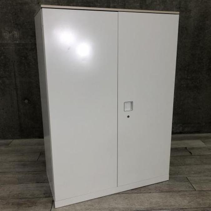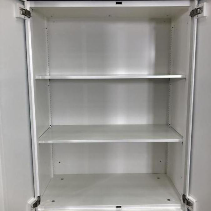 【使いやすさが人気です!】■オカムラ製 両開き書庫 ホワイト ナチュラル天板 ■上下左右から操作できる便利取っ手- 千葉店