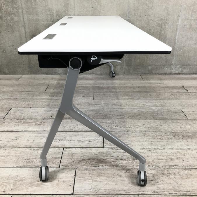 【折りたたみ収納が秀逸!スタイリッシュなデザインで高品質!】■オカムラ(okamura)製 インターアクトNTシリーズ(INTER ACTNT) サイドスタックテーブル W1500×D600×H720mm ■キャスター付 ■ホワイト
