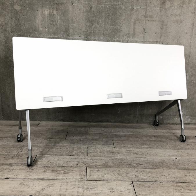 【折りたたみ収納が秀逸!スタイリッシュなデザインで高品質!】■オカムラ(okamura)製 インターアクトNTシリーズ(INTER ACTNT) サイドスタックテーブル W1500×D600×H720mm ■キャスター付 ■コンセント付 ■ホワイト