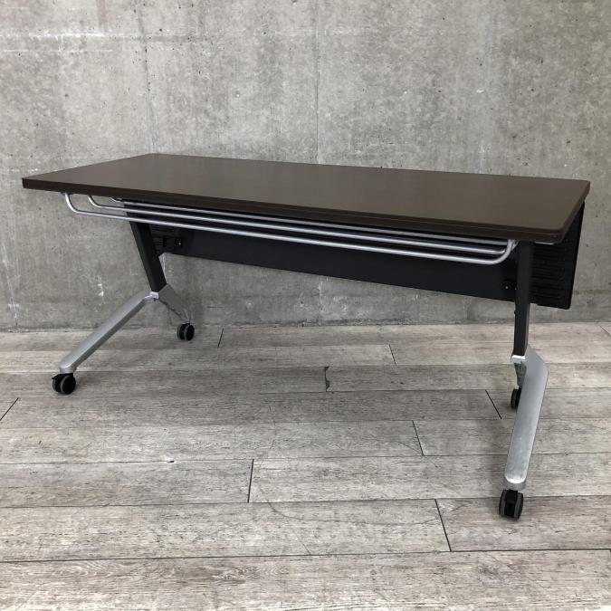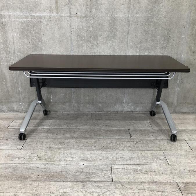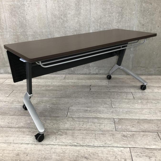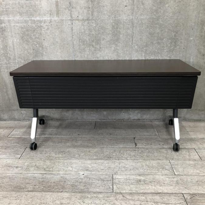 【在庫入替セール品!】【ブラウン天板】2名様で使えるスタンダードサイズのスタックテーブル入荷!■コクヨ(KOKUYO) サイドスタックテーブル ■幅1500×奥行600 ■幕板付き ■色:ブラウン【天板跳ね上げ式でコンパクトに収納】- 足立・葛飾店