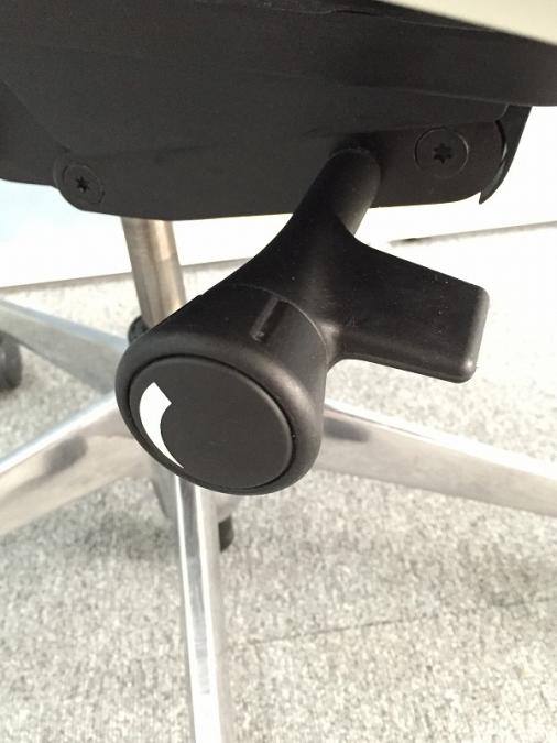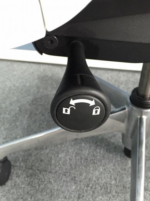 - 座面右下のダイヤル操作で、リクライニングの強弱調整が行えます。これまでのダイヤル式よりも、少ない回転数で、最弱?最強の調整が可能です。