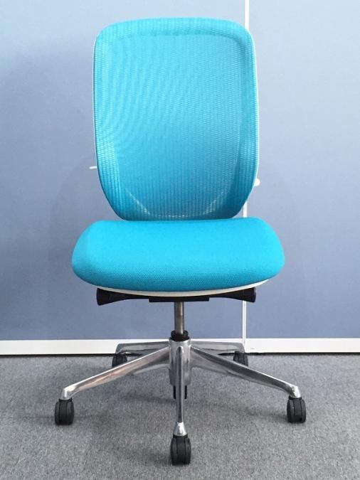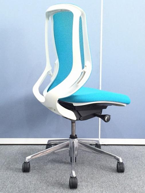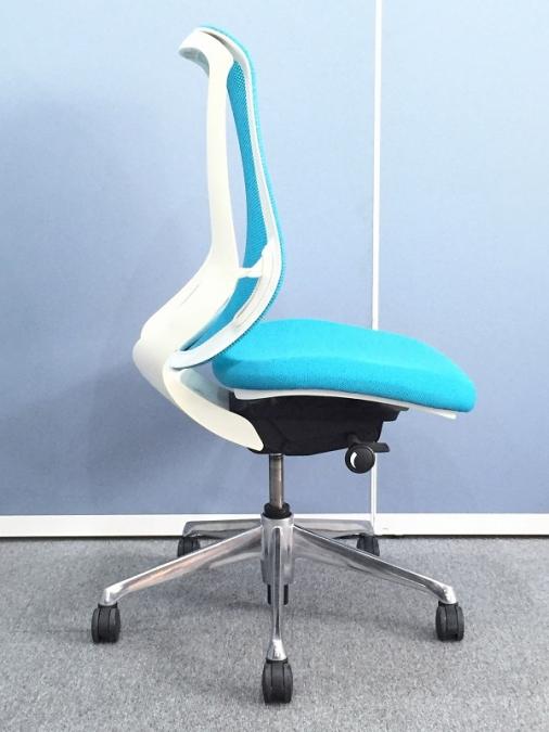 オカムラ シルフィ 肘無しハイバック ブルーグリーン×ホワイトフレーム ポリッシュ脚 前傾機能付き メッシュ- 名古屋千種店