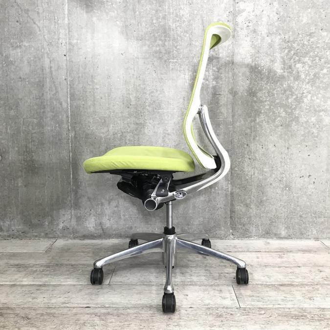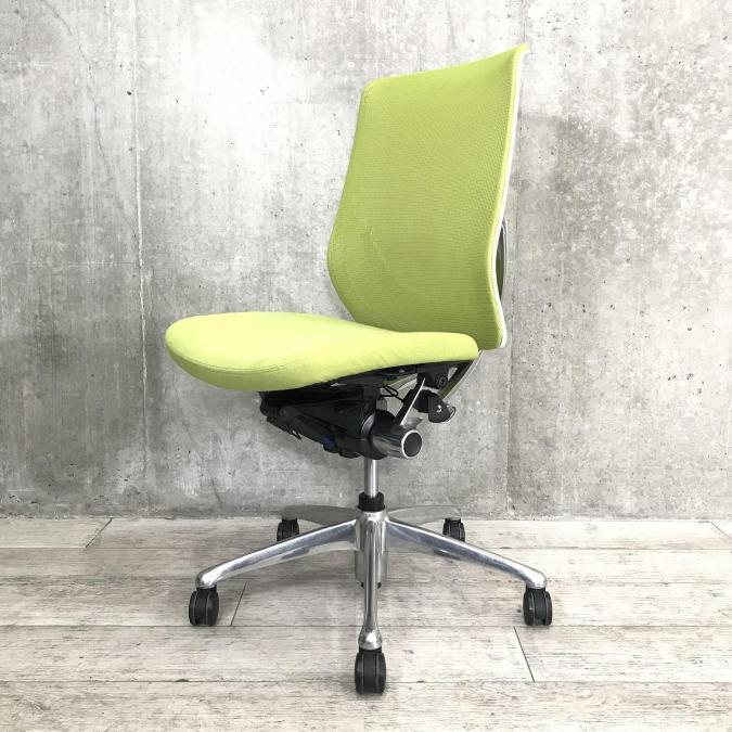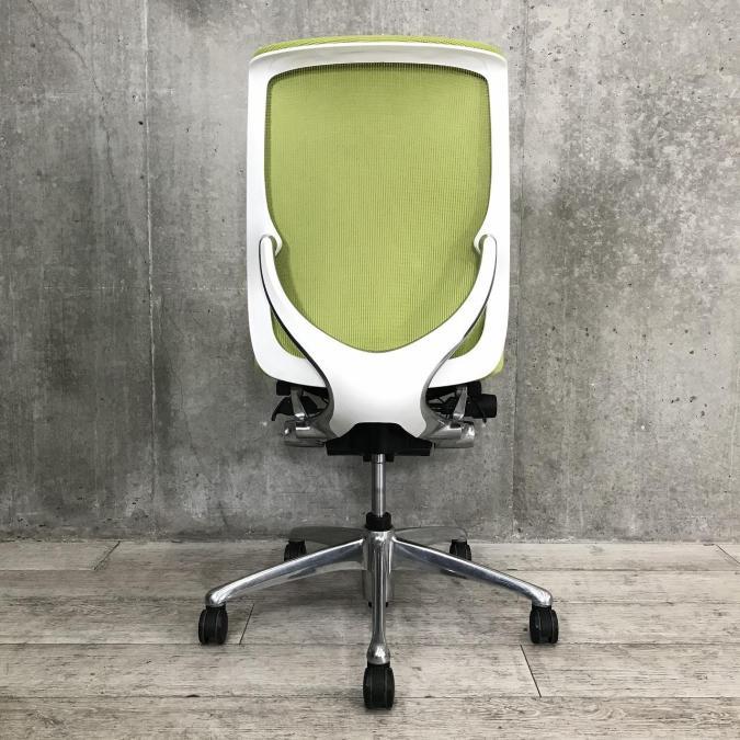 【在庫入替セール】オカムラ ゼファー ライトグリーン×ホワイトフレーム ポリッシュ脚 限定1脚のみ- 名古屋千種店