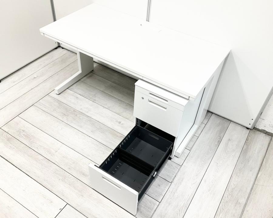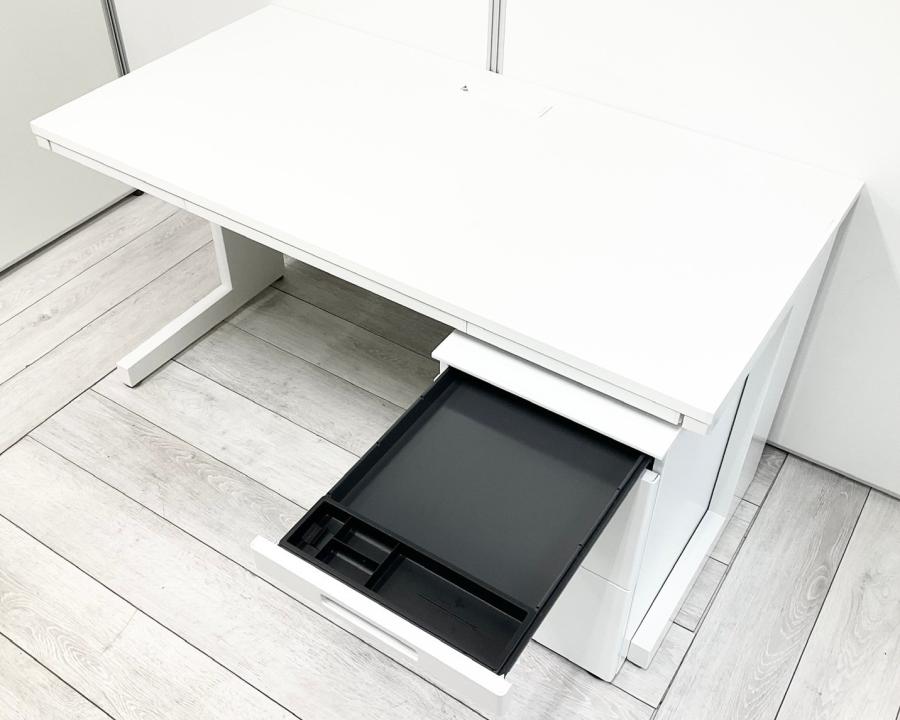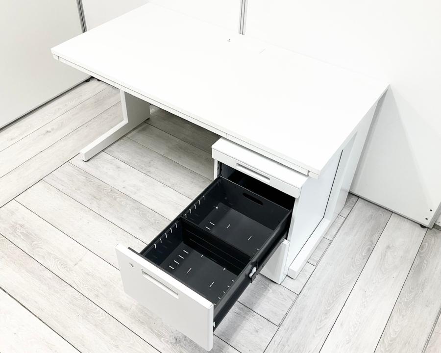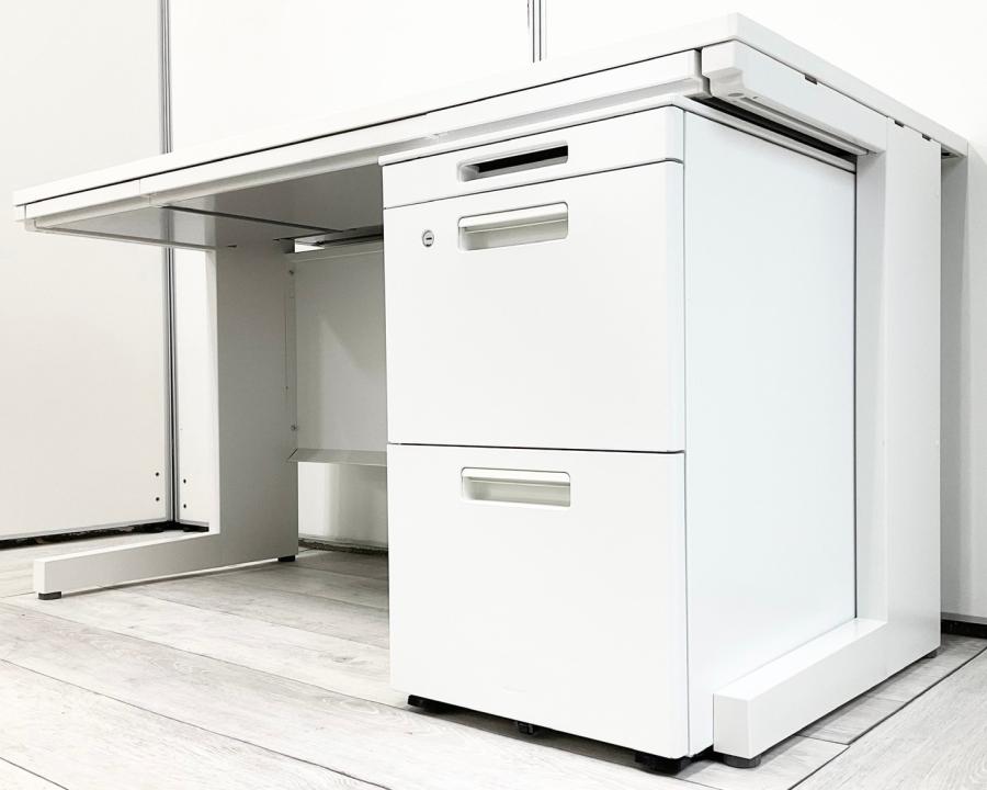 【引き出しつきデスクとワゴンの特別セット!】■内田洋行 スカエナシリーズ デスク+ワゴンセット ■横幅1200㎜×奥行き700 ■引き出しなし ■ホワイト 【中古でお得に買うなら品質の良いデスクを!】 ※ワゴンは在庫状況によって変動致します。