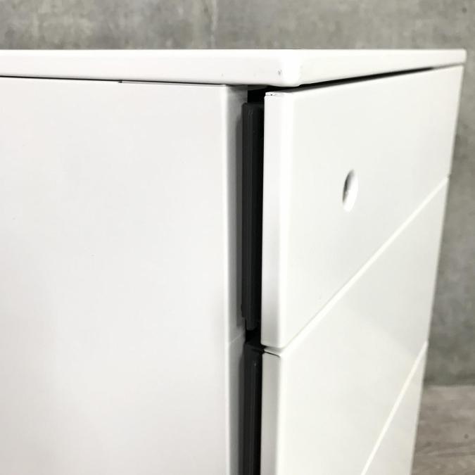 【正面に取っ手が無いフラットなデザイン!キャスター付でレイアウト変更がスムーズ!】■オカムラ(okamura)製 プロユニットシリーズ 3段ワゴン フリアド用ワゴン H650㎜ ■ホワイト ■シリンダー錠 ※キズ・塗装剝がれ有