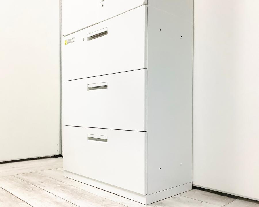 【把手部分日焼けありのため特価】◆ウチダ/HS 観音開き+3段引き出し 書庫 ハイキャビネット 博多 天神《オフィスバスターズ福岡博多店は、福岡を拠点として、日本全国へ中古オフィス用品・オフィス家具を提供しております》