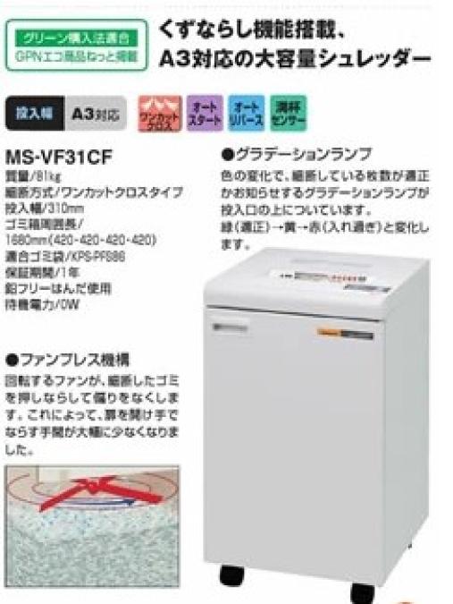 【1台限定入荷!】■MSシュレッダー MS-VF31CF 精密なクロスカット方式! オフィスバスターズ心斎橋店- 大阪心斎橋店