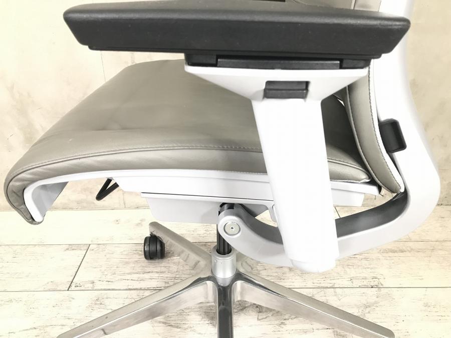 快適な座り心地に不可欠な調節機能である、上下昇降、座面の奥行き調整、リクライニングなどを備えており、操作もわかりやすく好評です。 特に、座面の奥行きは、座面下の左右に通った細いバーで調整でき、座ったままで軽やかに滑るように調整が可能です。 価格面では、新品では高めですが、中古は流通も多く、定価の3割前後の価格で高級チェアの座り心地を手に入れることができます!