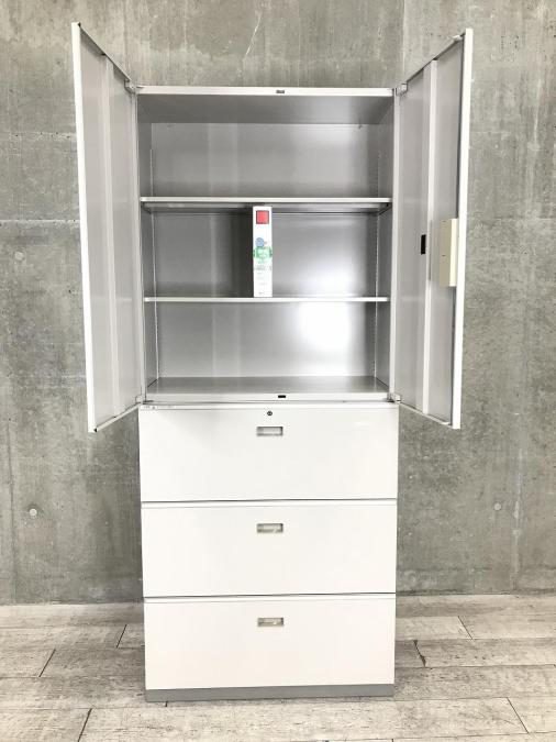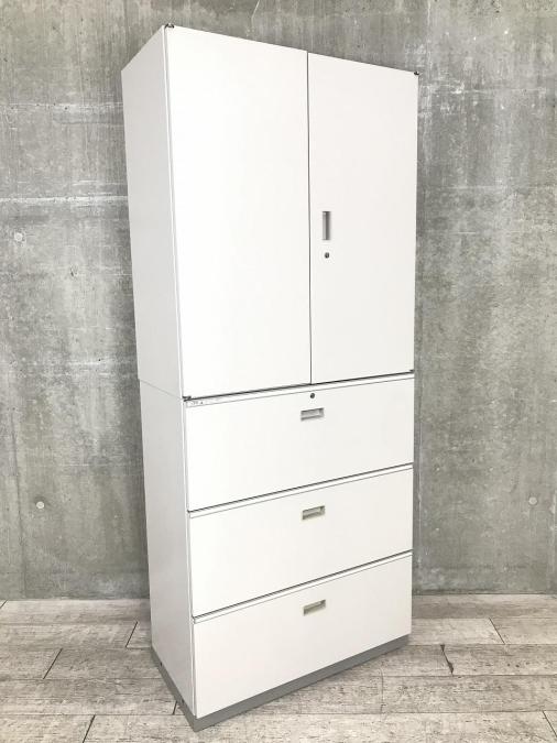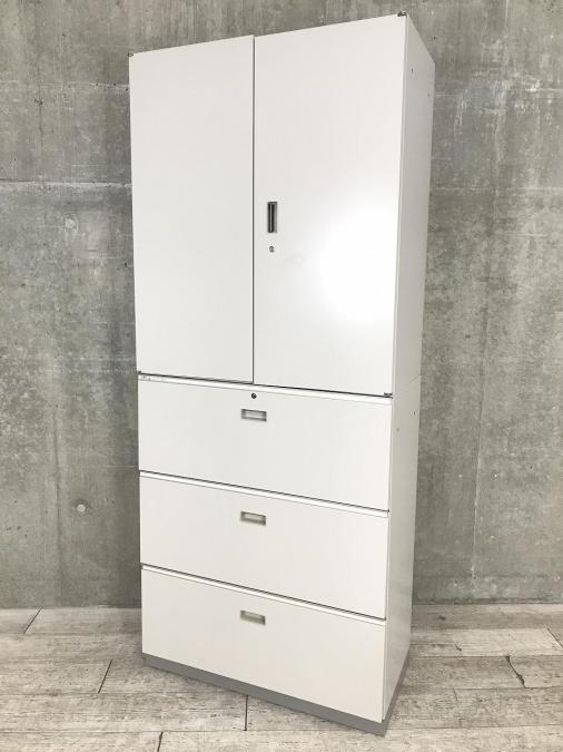 【倉庫在庫品】【これ1台で書類整理の問題が解決!上下で6段分の大容量収納!】■イトーキ (ITOKI)製 シンライン ハイキャビネット 両開き+3段ラテラル 書庫セット ■グレー ■シリンダー錠
