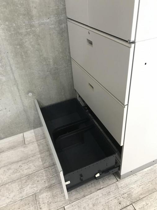 - 一部不具合ありそ引出の開閉不可、施錠不可、棚板無しといったの書庫の本来の効用を果たすための機能以外の一部が使用不可(例、扉、引出の開閉がしづらいなどがある。 )