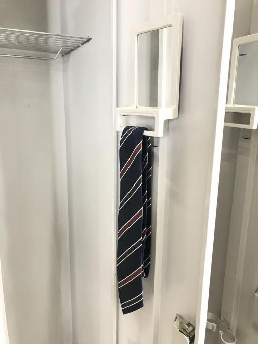 - 完備鏡、ネクタイ掛け、傘立て、網棚、フック等が全て完備されている。
