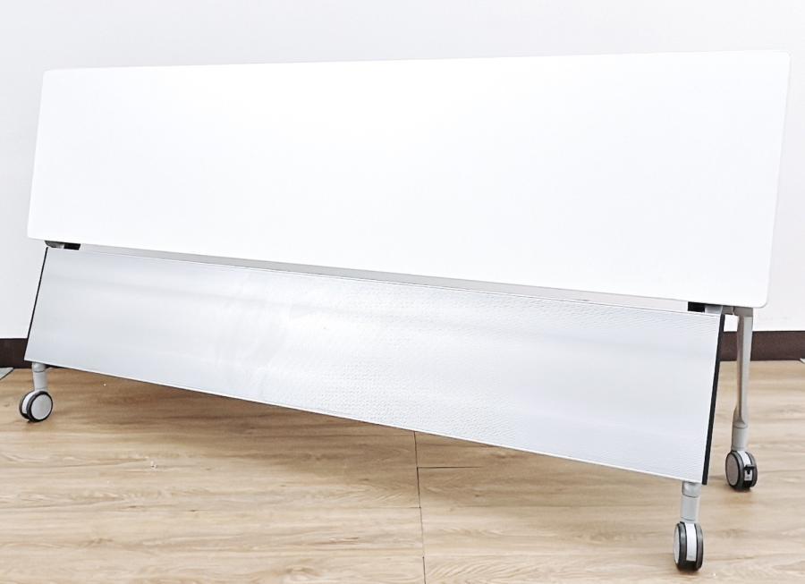 高級感あり!3人掛け可能なキャスター付・天板跳ね上げ型ミーティングテーブル! ■オカムラ/インターアクト(Interact NT)/ホワイト W1800 D600 フラップテーブル- 立川・八王子店