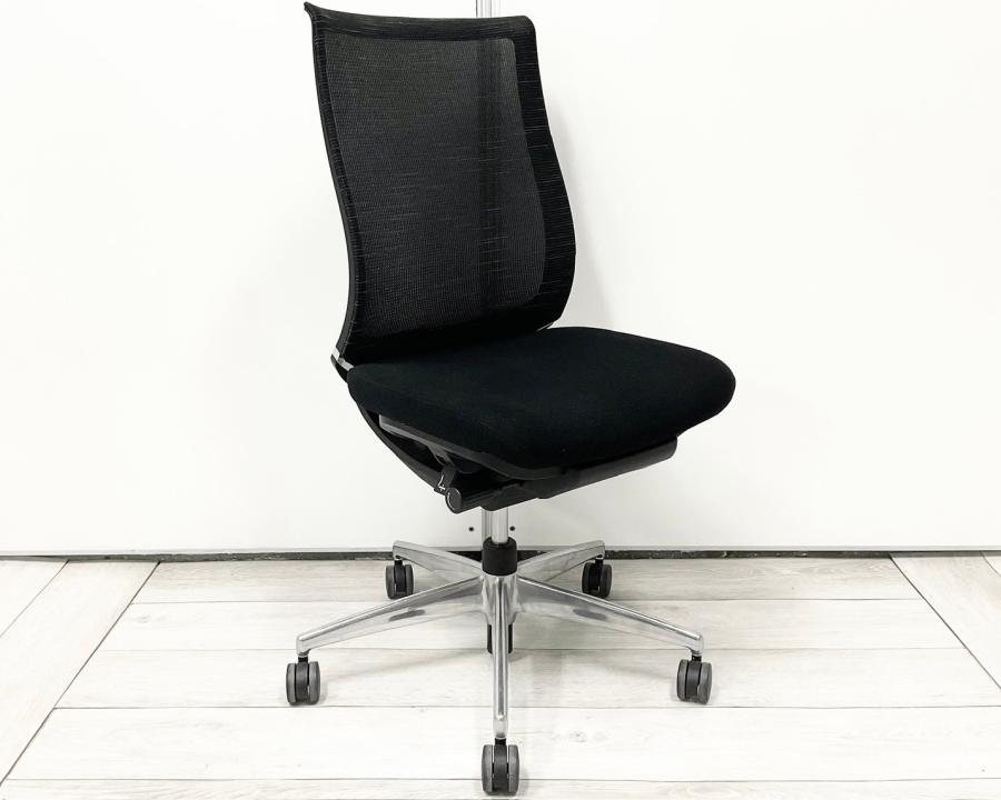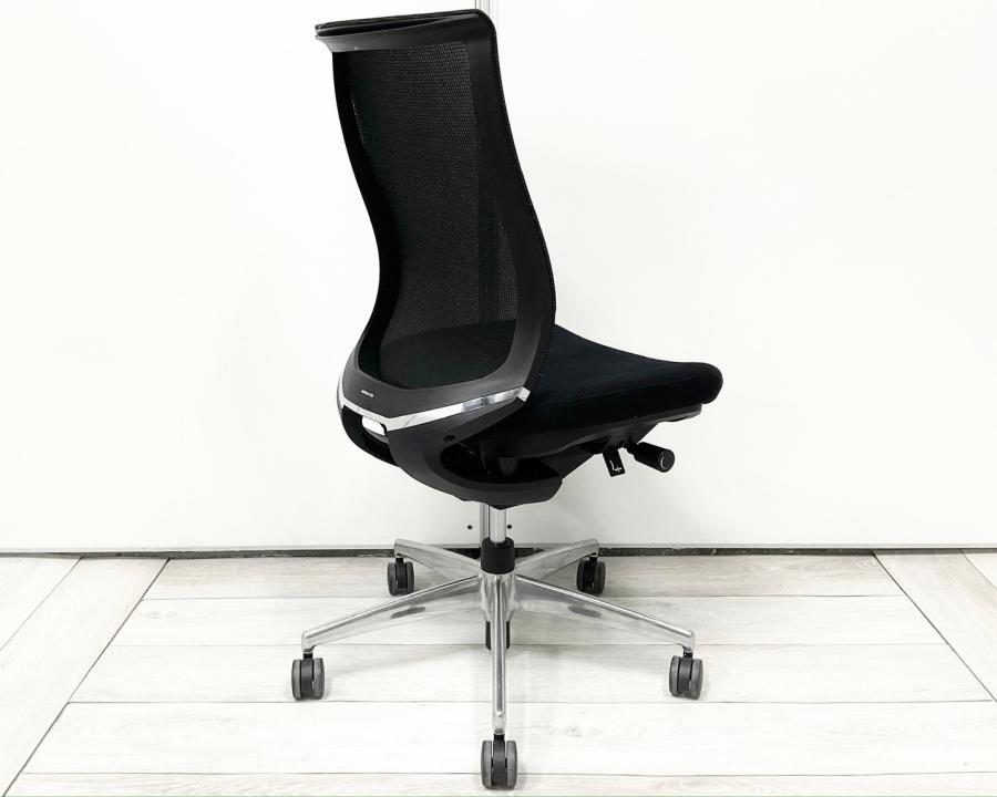 お洒落なテクスチャードメッシュ仕様!前傾機能付き高級チェア!重厚感のあるブラック×ポリッシュ仕様 応接室や会議用にもおすすめ! ■コクヨ/ベゼル/ブラック 肘無タイプ