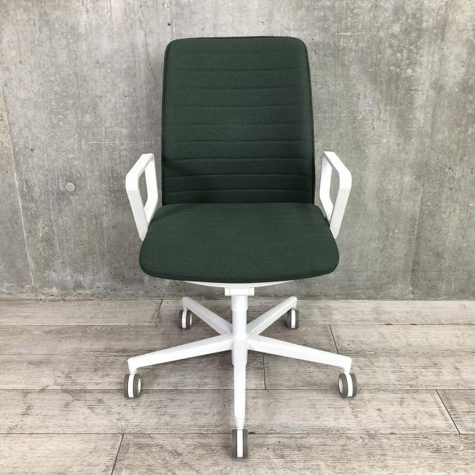 【コクヨの最新チェア!】姿勢をサポートする機能性と、空間に溶け込む柔らかなデザイン ■コクヨ FABRE(ファブレ)ファブリック ストライプタイプ ■ローバック 固定肘付き ■ディープグリーン【オフィスにもホームも】- つくば店