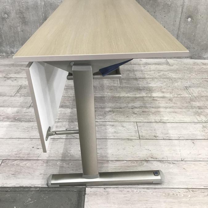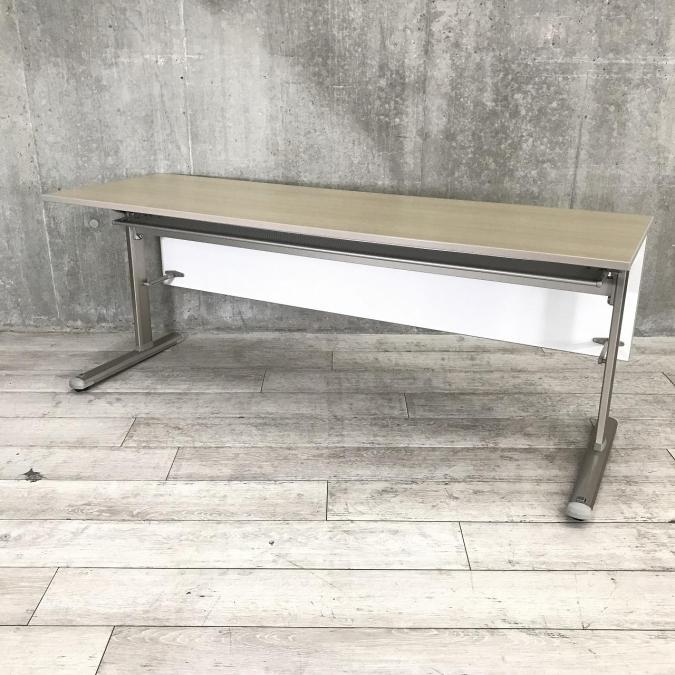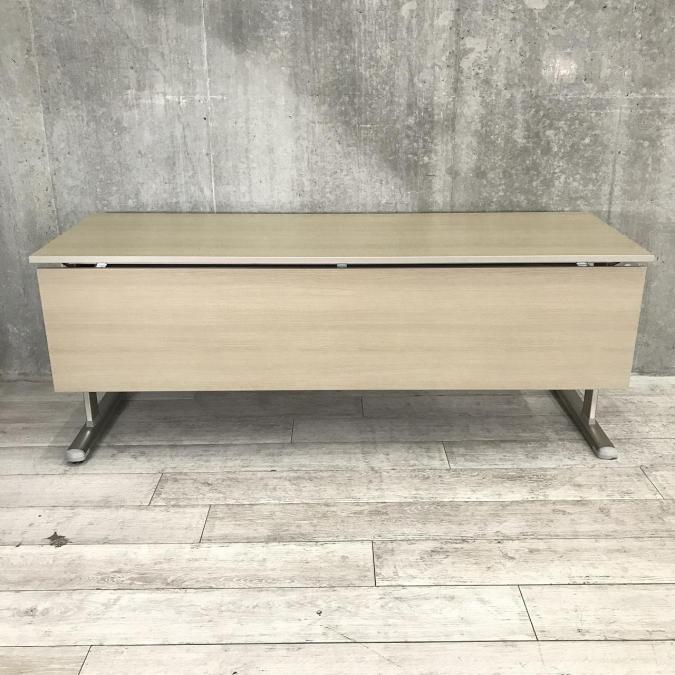 【2~3名でのご利用にオススメ】木目の天板と幕板がオシャレなスタックテーブル ■KOKUYO製 サイドスタックテーブル ■幅1800×奥行600 ■幕板付き ■木目ナチュラル【天板跳ね上げ式でコンパクトに収納】- 岐阜店