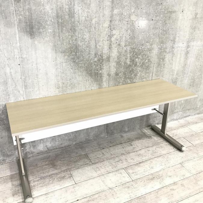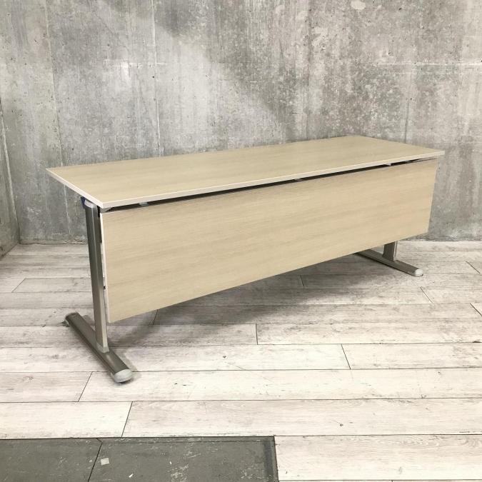 【2~3名でのご利用にオススメ】木目の天板と幕板がオシャレなスタックテーブル ■KOKUYO製 サイドスタックテーブル ■幅1800×奥行600 ■幕板付き ■木目ナチュラル【天板跳ね上げ式でコンパクトに収納】- 在庫数