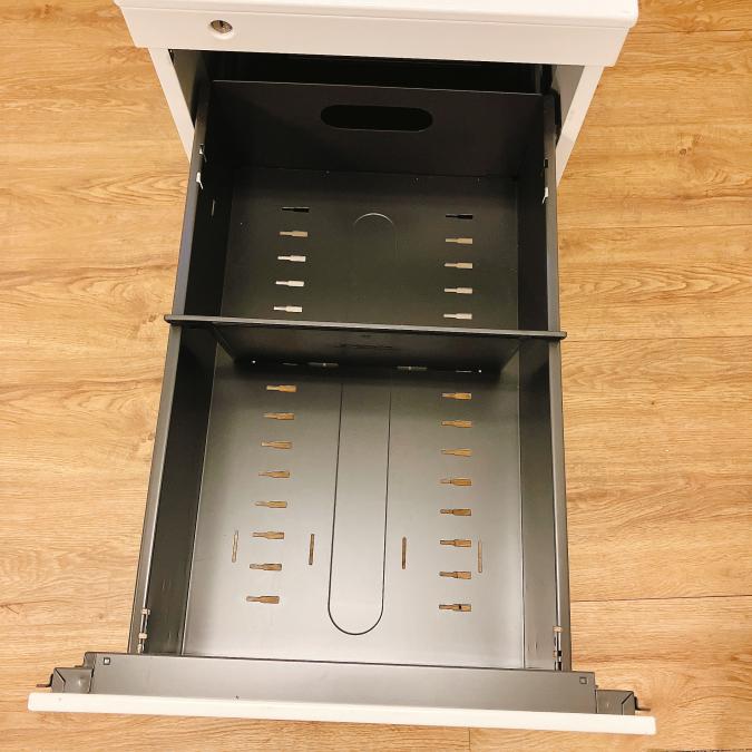 - 一部不具合ありその脇机・ワゴンの本来の効用を果たすための機能以外の一部が使用不可な状態。(例、引出が開閉しづらい、 キャスターロック機能使用不可、ラッチ不良 等がある。)