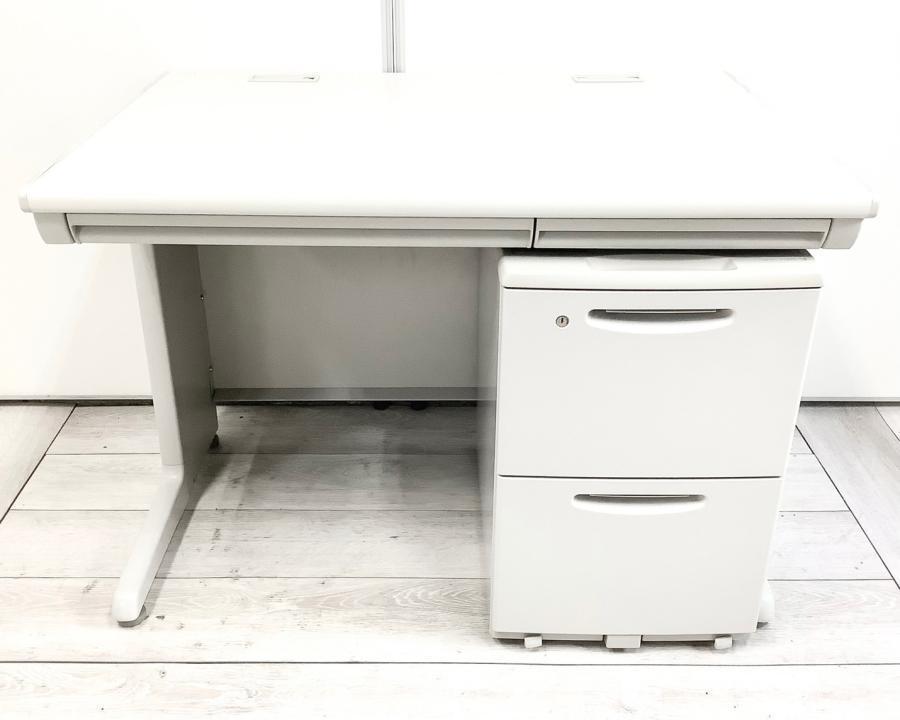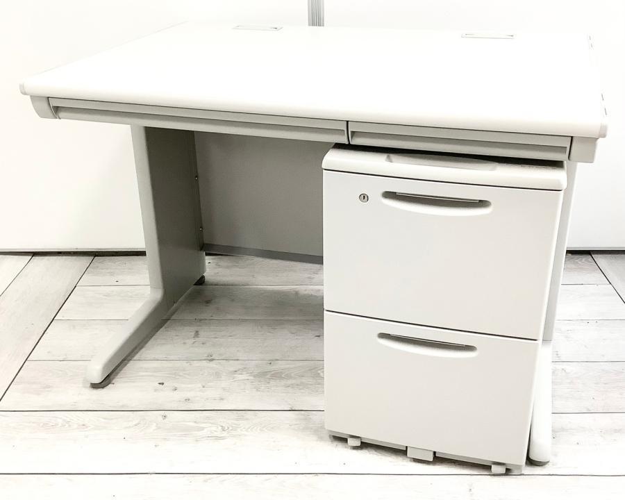 【コンパクトでスタンダード!使いやすい引き出し付きデスク!】■オカムラ(okamura)製 SD-Vシリーズ 平机+ワゴンセット(片袖机) 引き出し付き W1000㎜ ■ライトグレー ※ワゴンは在庫状況によって変動致します。