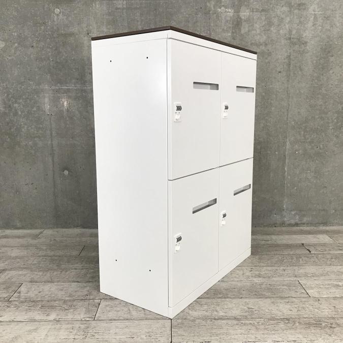 【商品入替のため、残り4台限り】オカムラ製 レクトライン ホワイト 4人用 投函口有り ダイヤル錠 ナチュラル木目調天板 フリーアドレスオフィスの必需品! ダイヤル錠式で鍵の持ち運び要らず! 4人用パーソナルロッカー!!※非常解除キーはついていません