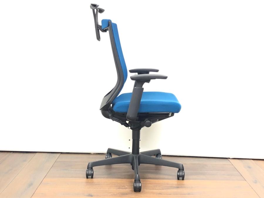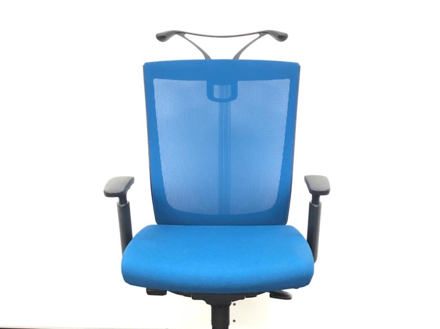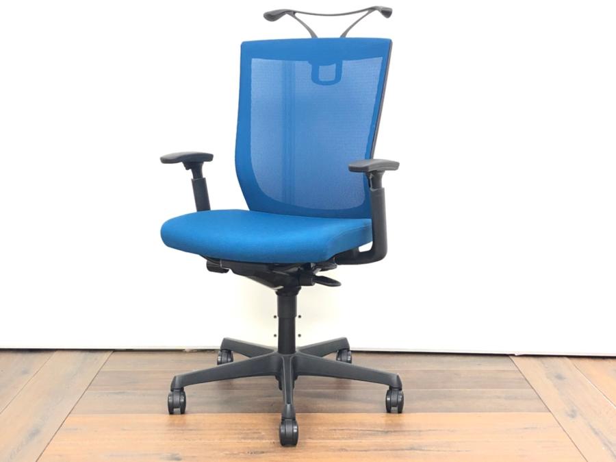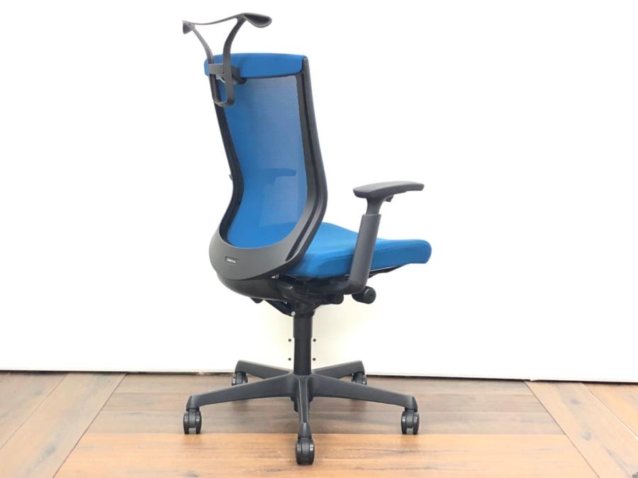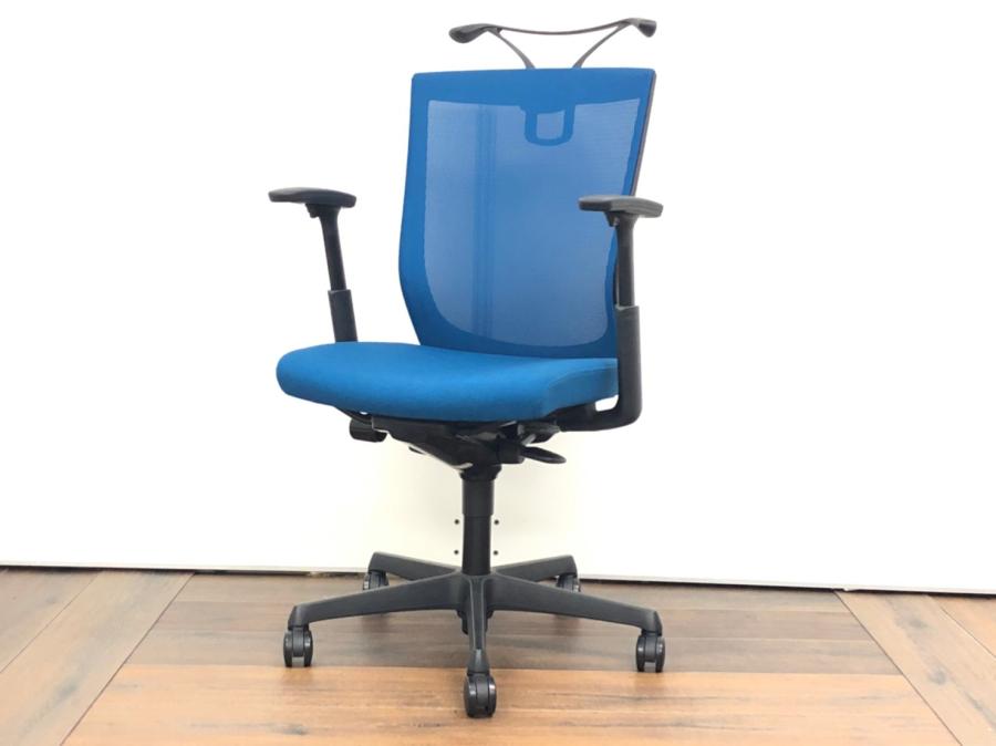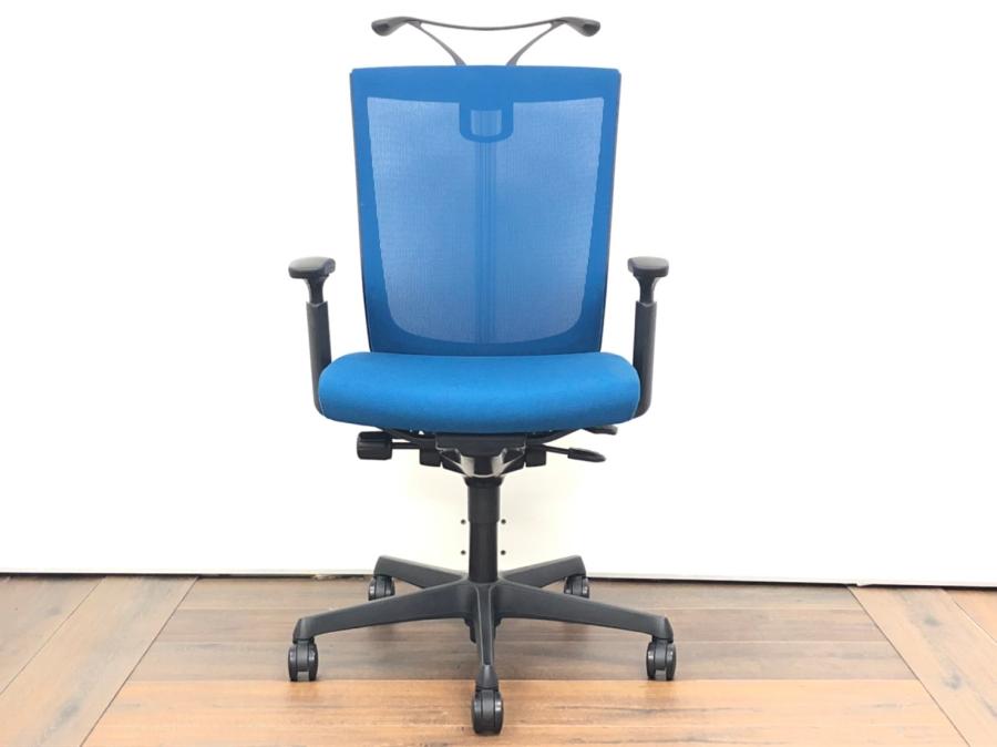 【A00962920】【デスクワークの負担を軽減!】■オカムラ製 エスクードメッシュチェア ブルー ■背中のメッシュが快適にフィット感!【在庫入替セール】