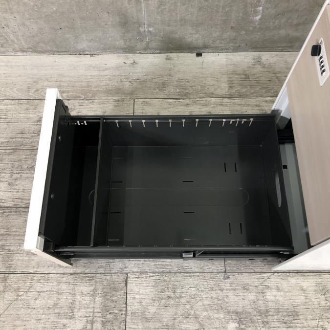 【珍しい木目のワゴン入荷!】オカムラ(okamura)プロステージクレストシリーズ 3段ワゴン ■色:本体/ホワイト 正面/ナチュラル ダイヤル錠タイプ オフィスバスターズ心斎橋店- 大阪心斎橋店