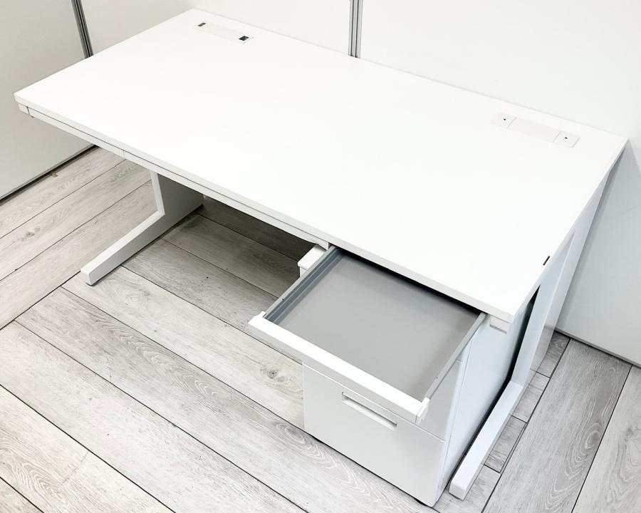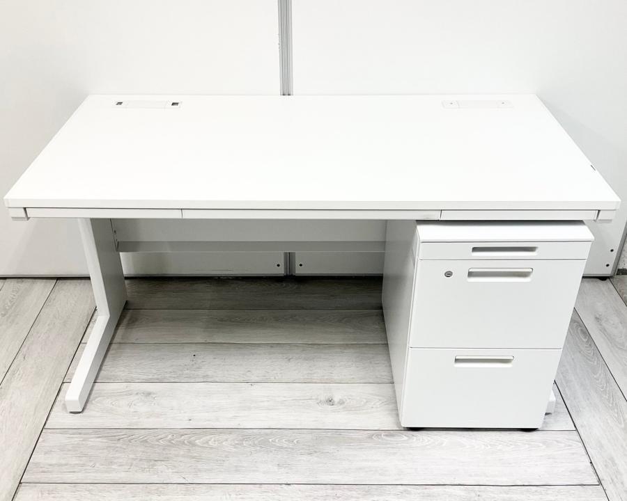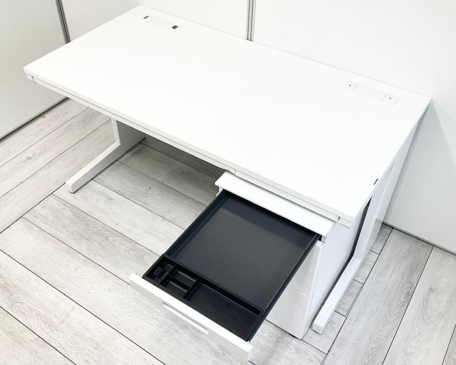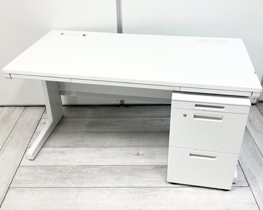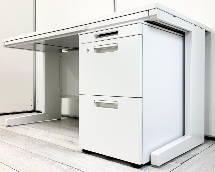 【在庫入替セール】片袖机 イナバ デュエナ W1400のおおきめサイズ 清潔感のあるホワイトカラー 鍵付き ※天板ふちにキズの補修跡あり