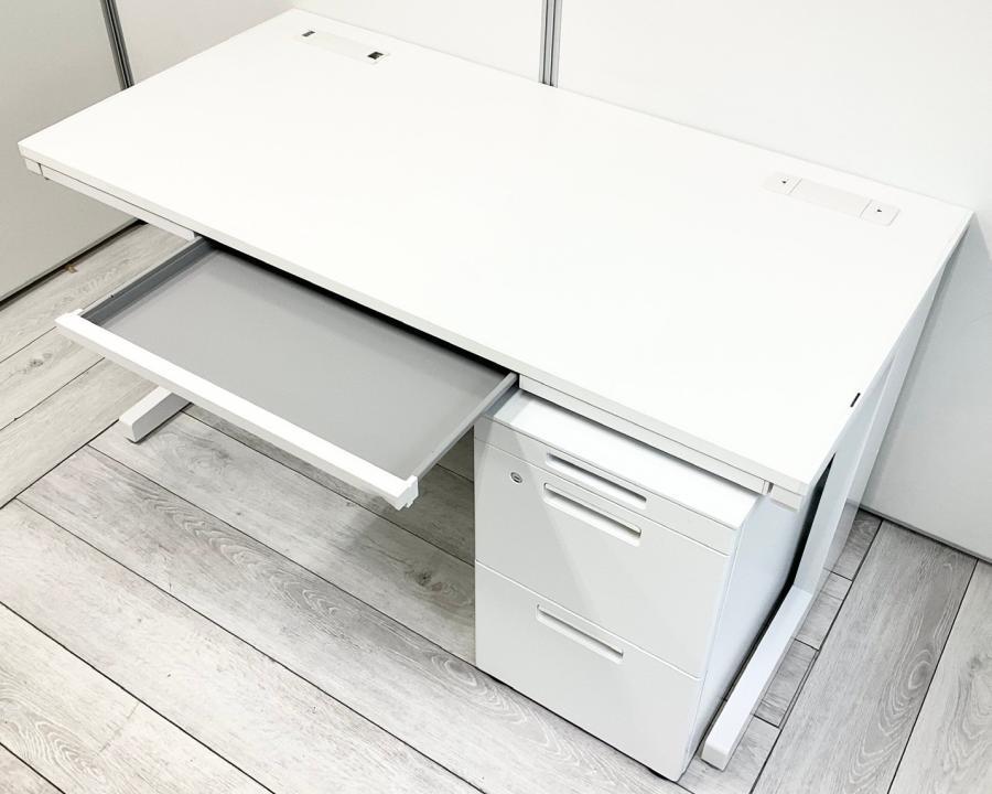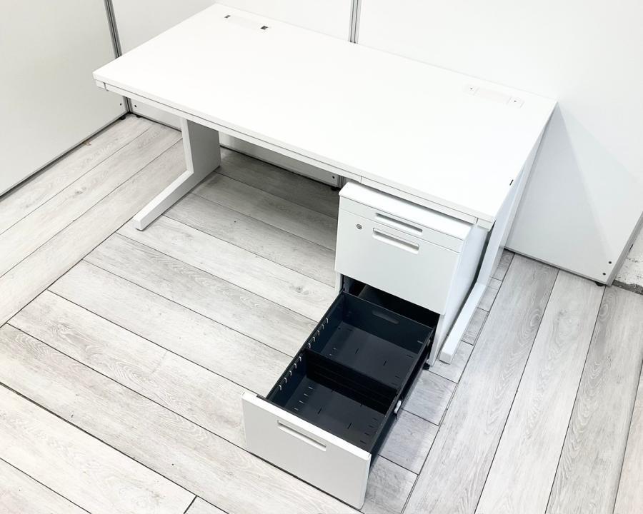 【イナバの技術が詰め込まれたスタンダードなオフィスデスク!収納も充実で使いやすい!】■イナバ(Inaba)製 デュエナシリーズ 片袖机 W1400×D700㎜ ■ホワイト ■シリンダー鍵 ※日焼け有【2510】弊社使用欄【A01040301】