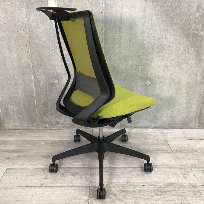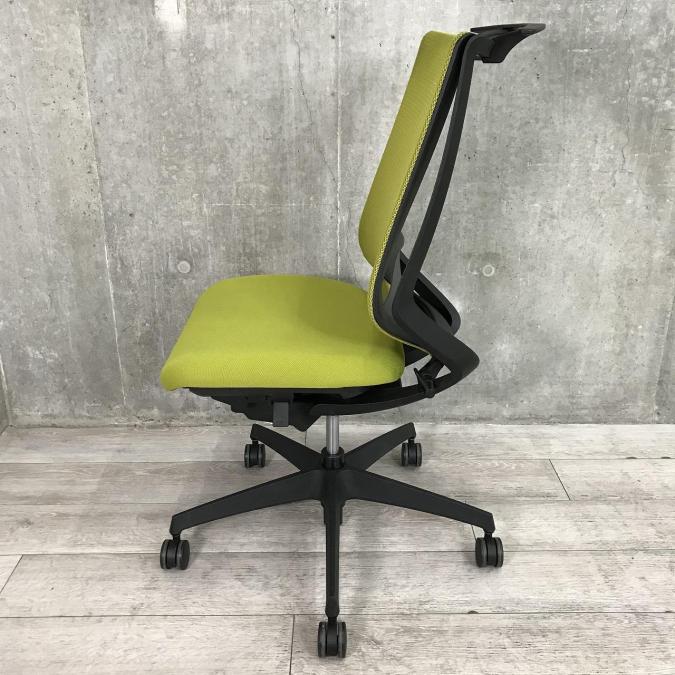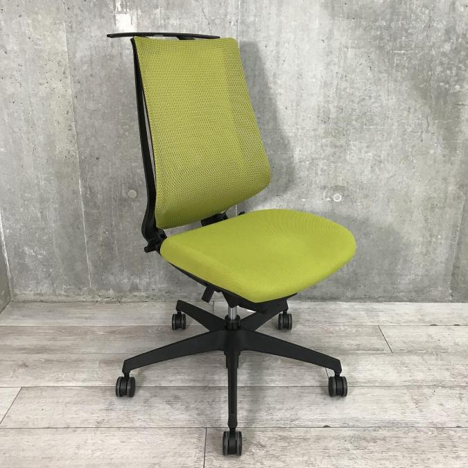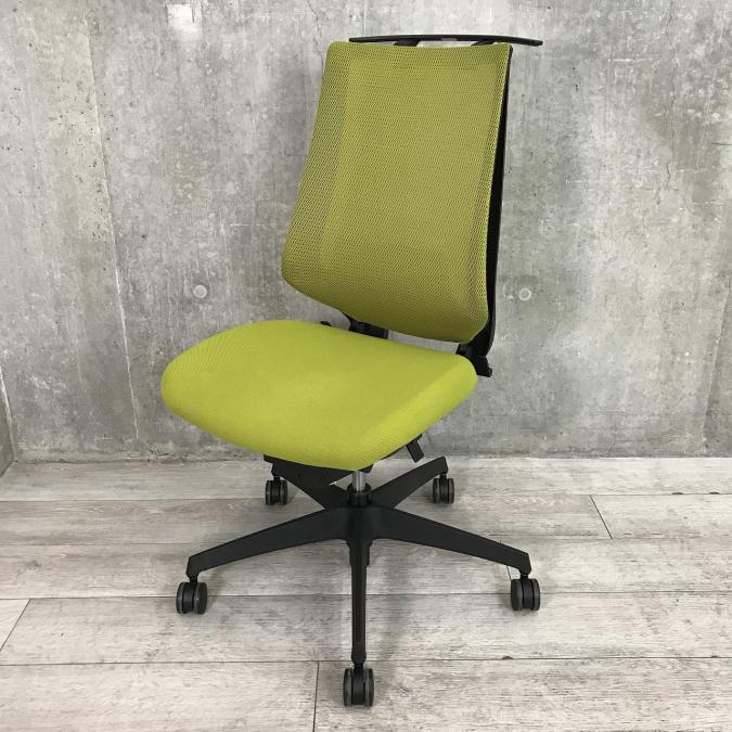 コクヨ デュオラ 肘無しハイバックチェア ライトオリーブ×ブラックフレーム ランバサポート・コートハンガー付き- 名古屋千種店