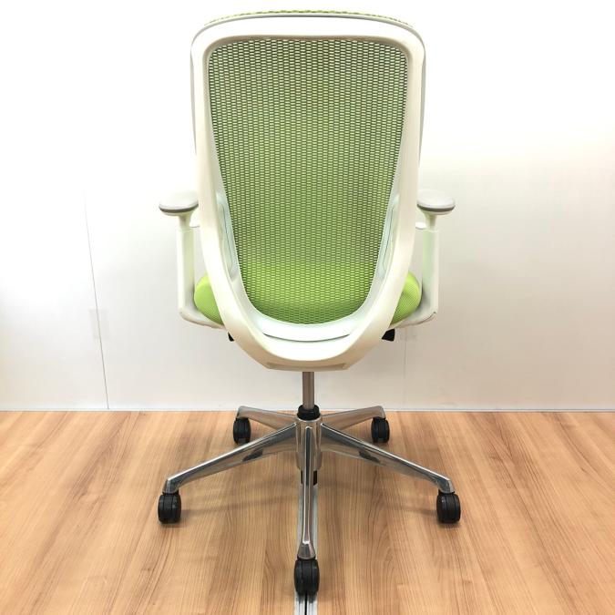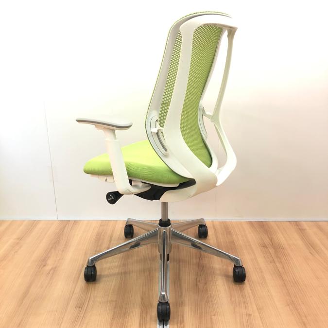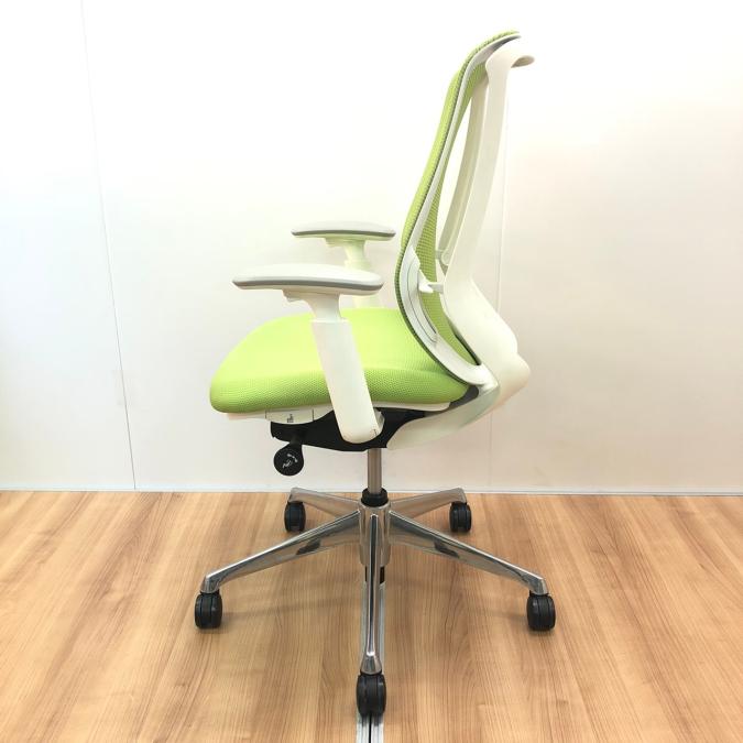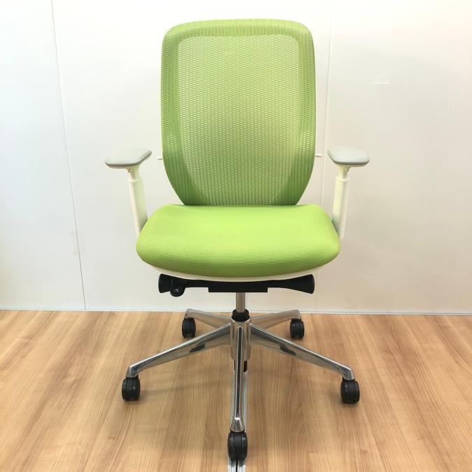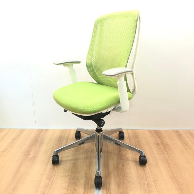 【在庫入替セール品】【人気のシルフィチェアヘッドレスト付きが1脚限定入荷!】オカムラ シルフィ ライムグリーン エクストラハイバック ホワイトフレーム デザインアーム(固定肘) 前傾チルト機能付き