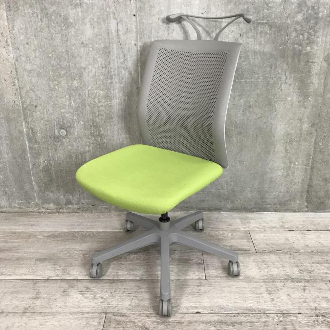 【人それぞれに合わせた快適な座り心地を実現!】■オカムラ オムネスチェア ライムグリーン コートハンガー付き- つくば店