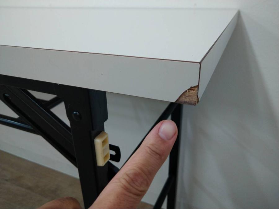 - 壊れている天板歪み、アジャスター無し、キャスター使用不可のようにそのテーブルの本来の効用を果たすための機能に不具合がある。