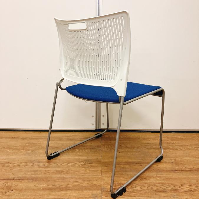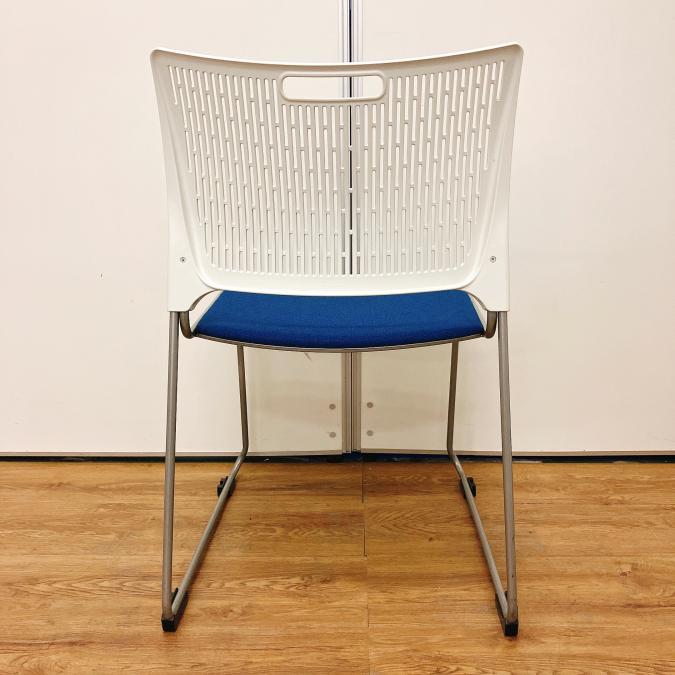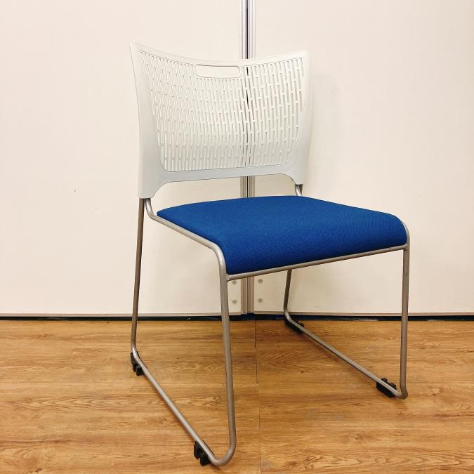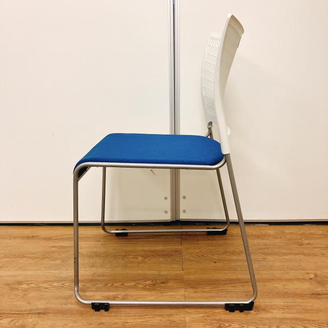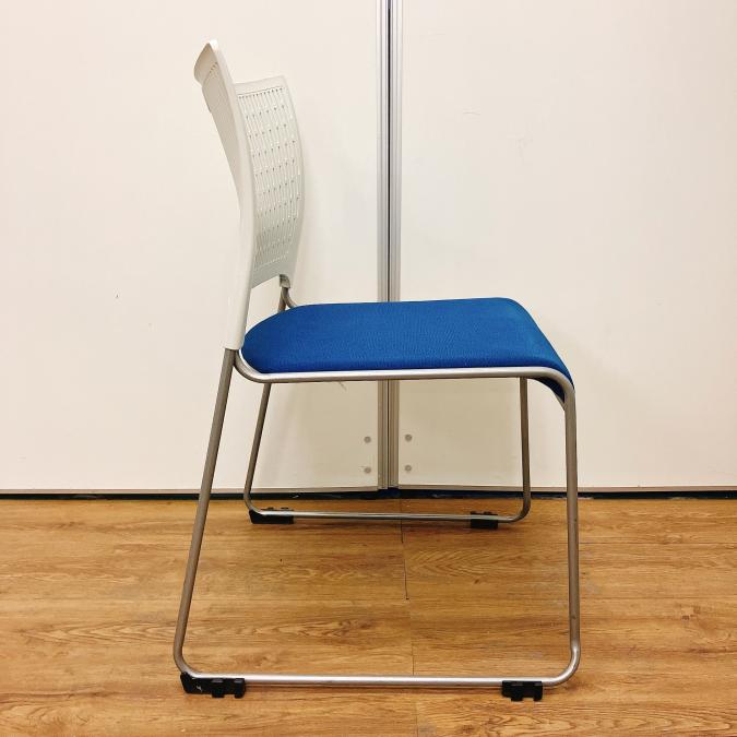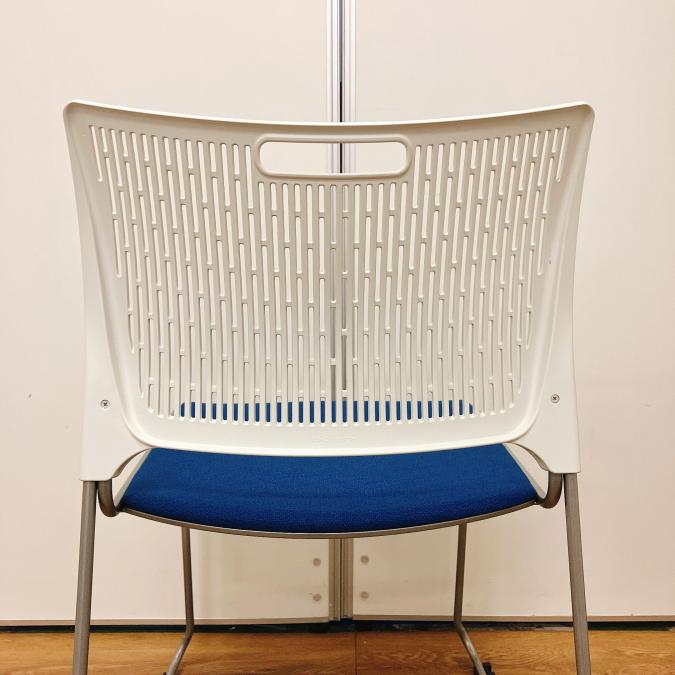 【重ねて収納可能!さわやかなカラーとシンプルデザイン!】■オカムラ製 レーテ スタッキングチェア ミーティングチェア ■キャスター付き ■座面ブルー×背面ホワイト【2412】弊社使用欄【A00990049】