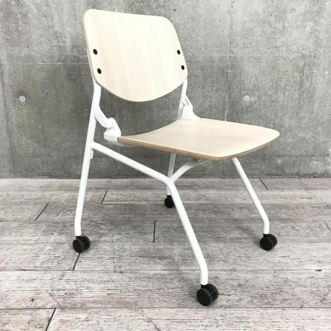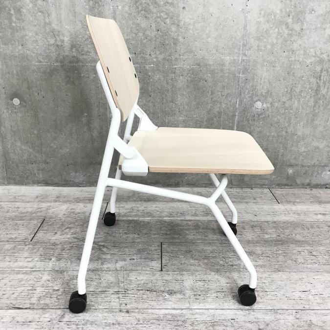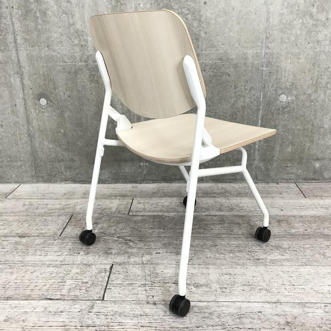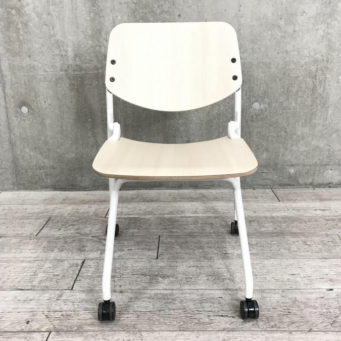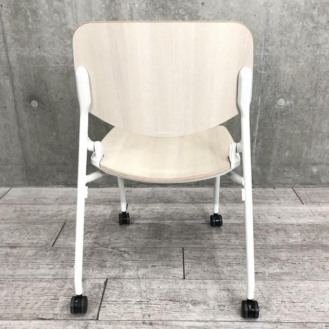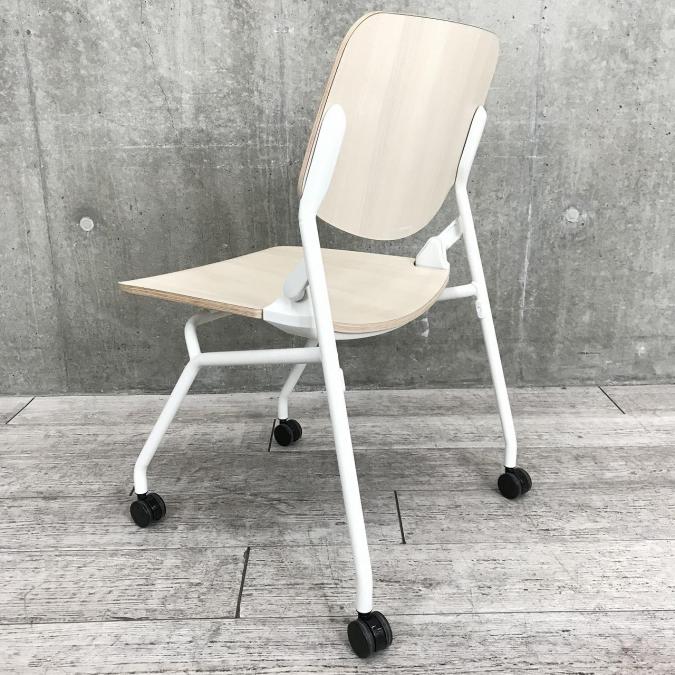 オカムラ ライブス ネスティングチェア パッドなし プライズウッドライト(MX51) ホワイトフレーム 木目調の優しい仕上がり 2022年製のため良好品- 名古屋千種店
