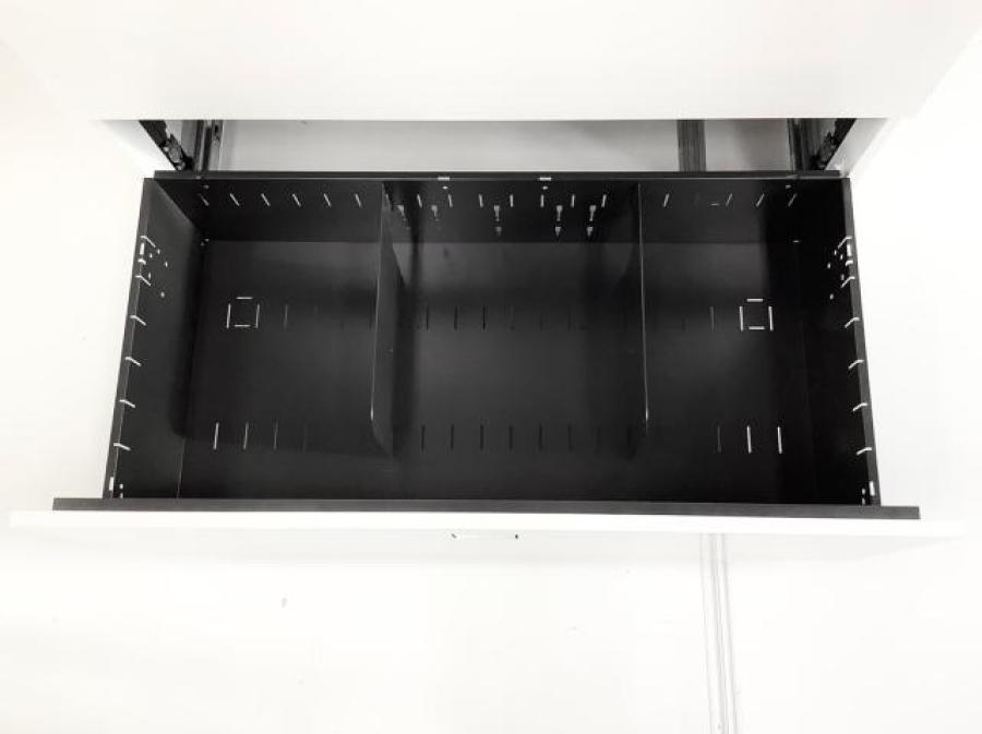 オフィスの必需品!書類をスッキリ整理できる容量の3段キャビネット取っ手がどの方向からでも開くマルチハンドル! ■オカムラ/レクトライン(Rectline)/ホワイト