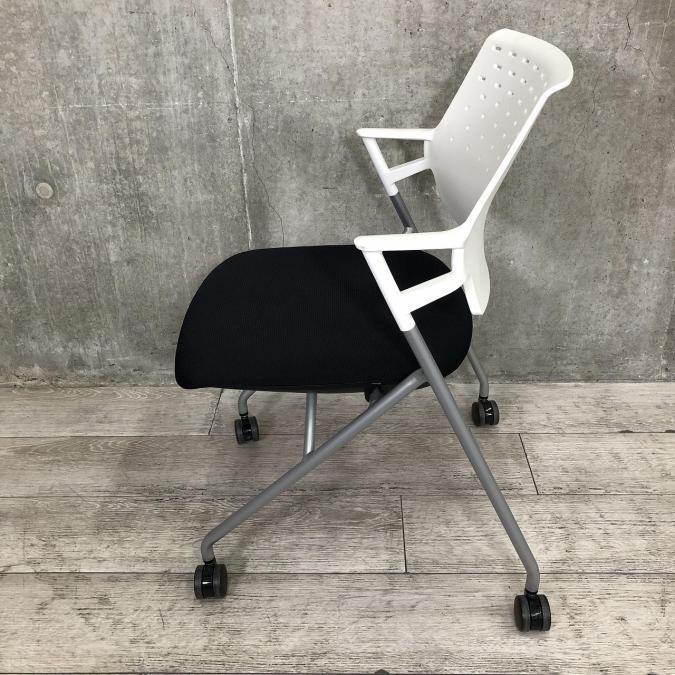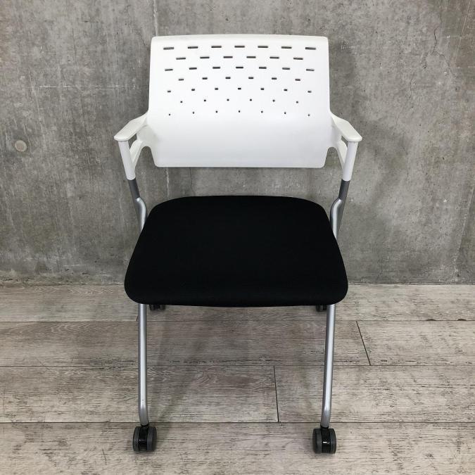 【キャスター付きのミーティングチェア入荷!】■コクヨ(KOKUYO)製 ピエガ ミーティングチェア ネスティング ■キャスター付き ■ブラック座面×ホワイトフレーム【使わない時は重ねて収納可能!】- 茨城南店